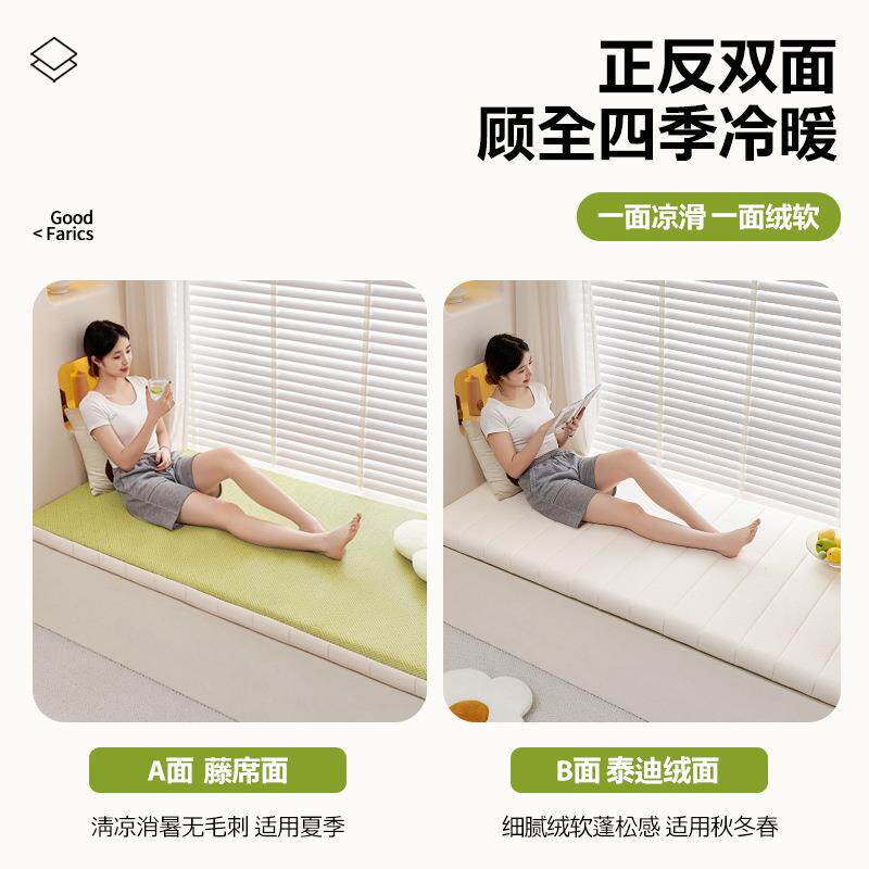 新款四季通用藤席海绵垫飘窗垫可拆洗款泰迪绒双面阳台榻榻米垫子