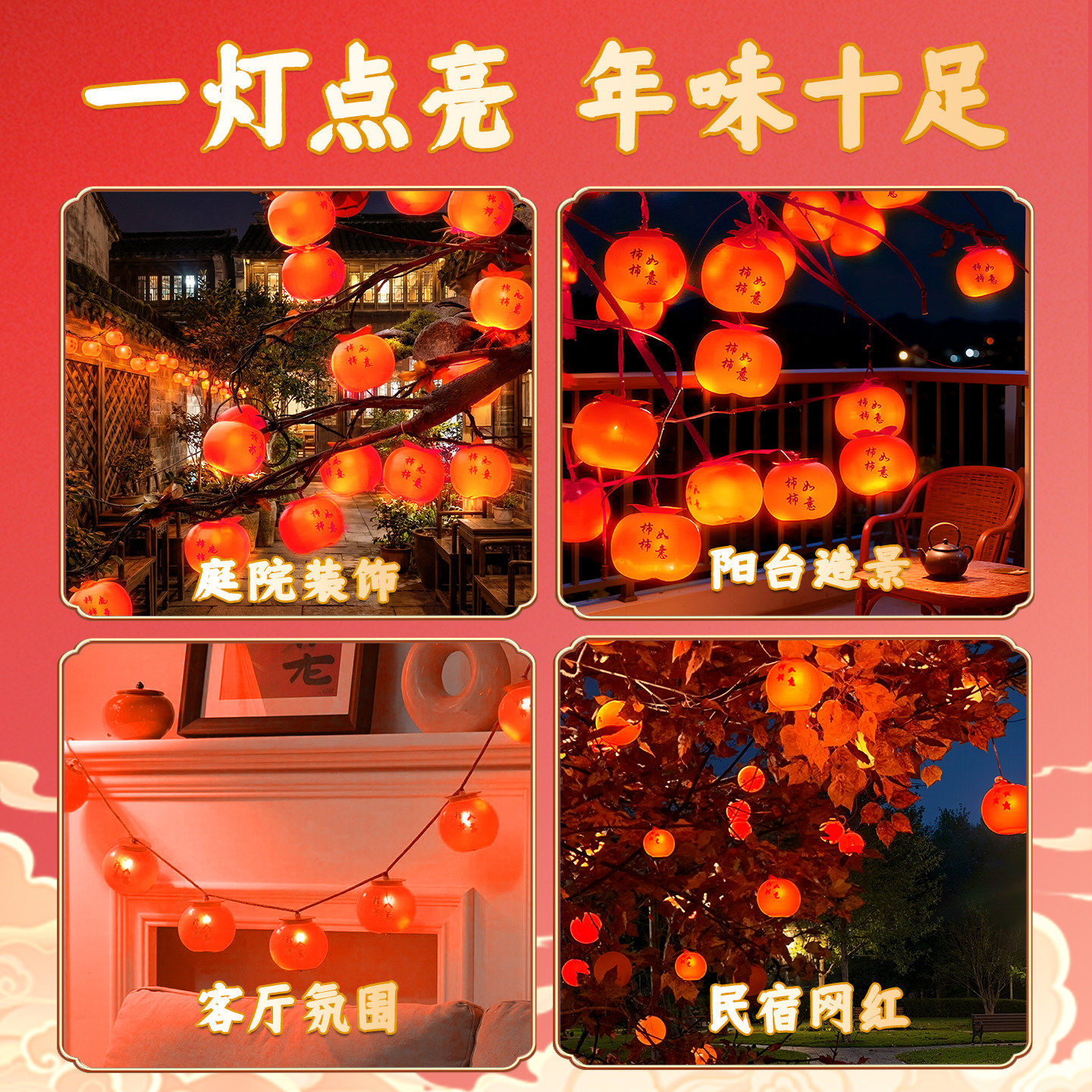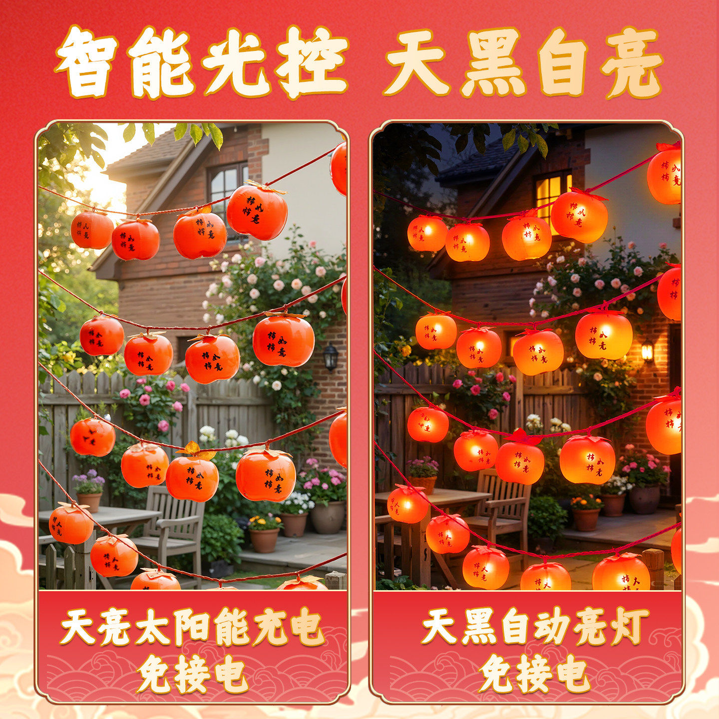2026新款太阳能柿子灯笼户外挂树上氛围灯串过年新年庭院装饰彩灯