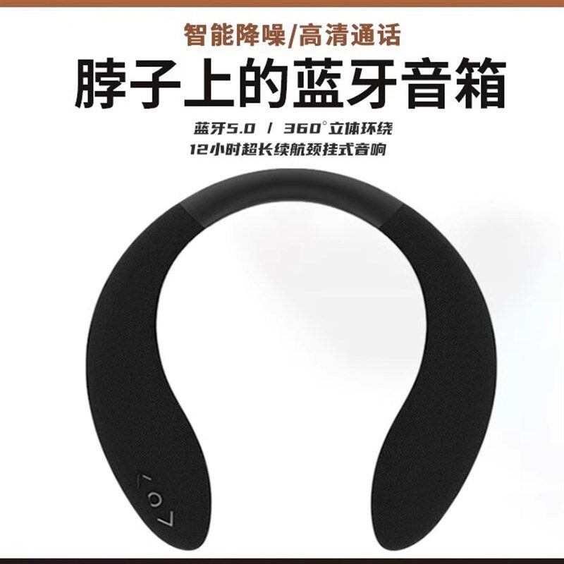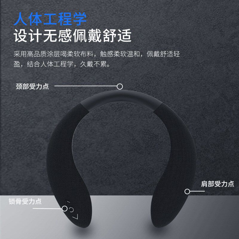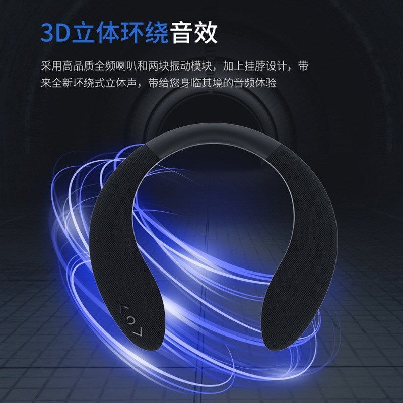 便携户外立体声重低音穿戴式软胶围脖无线蓝牙音响挂脖式蓝牙音箱