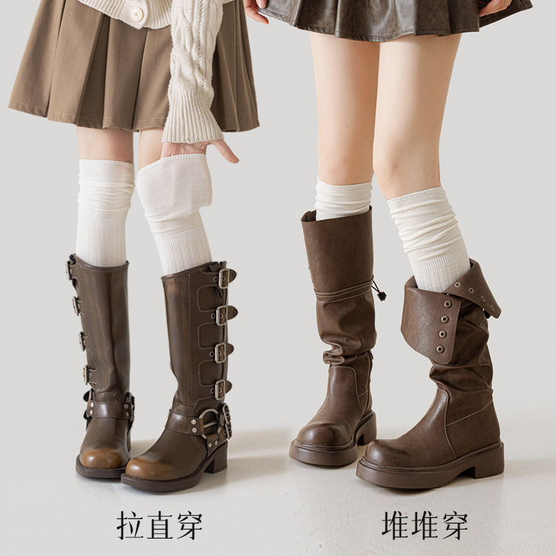 长筒靴袜子女搭配靴子小腿堆堆过膝袜