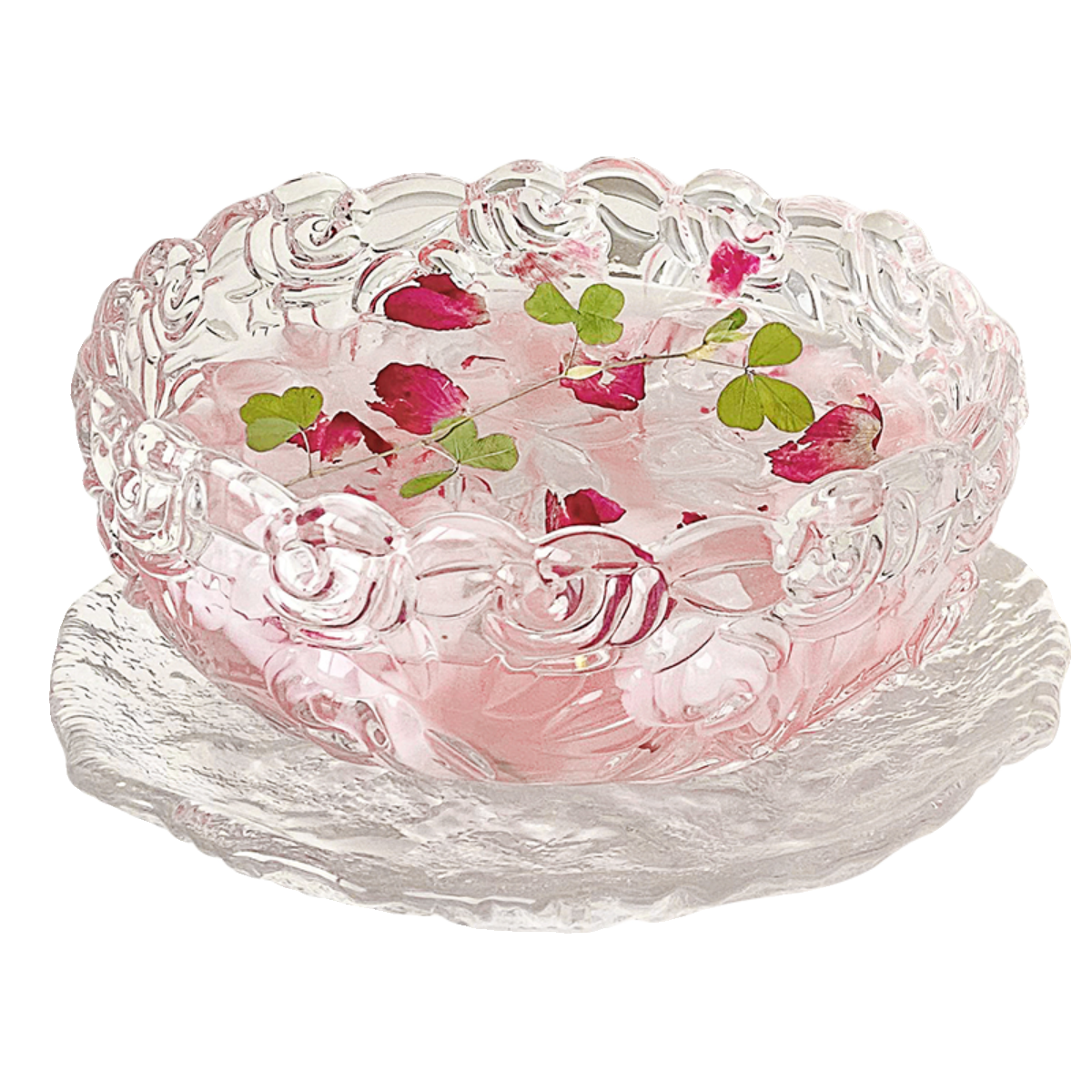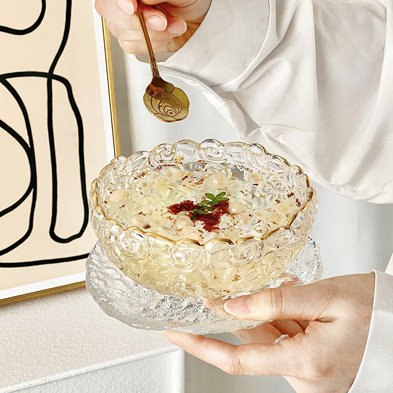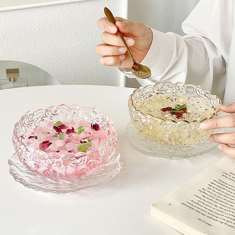 高颜值玻璃玫瑰甜品碗碟套装精致银耳羹燕窝碗带勺糖水酸奶燕麦碗