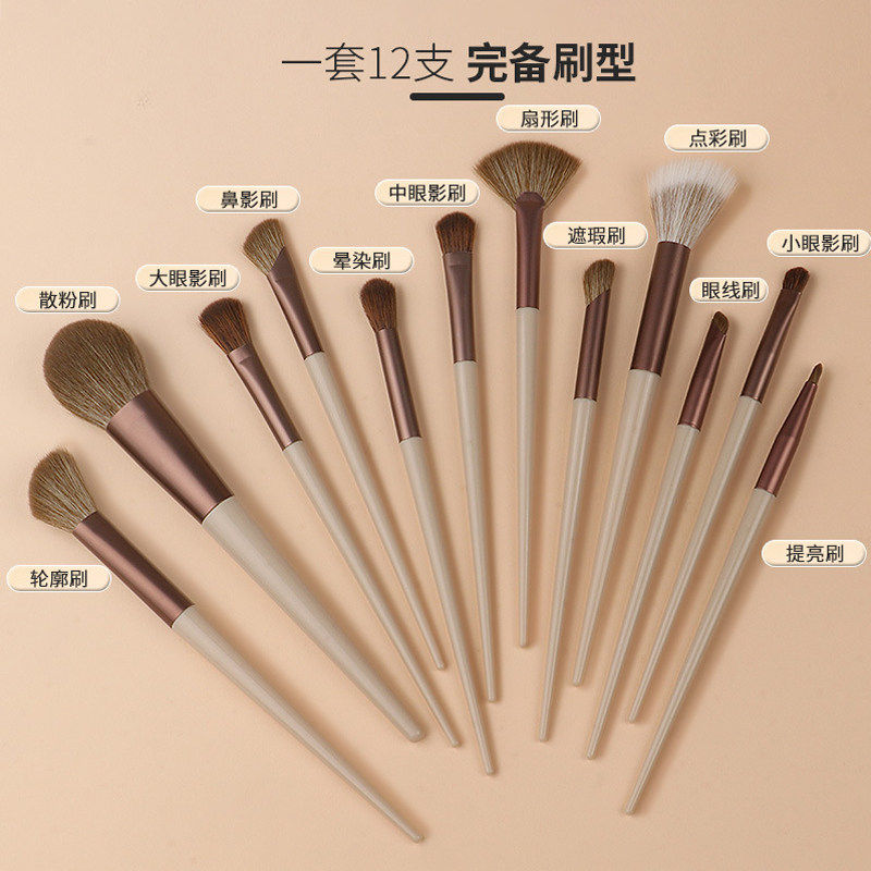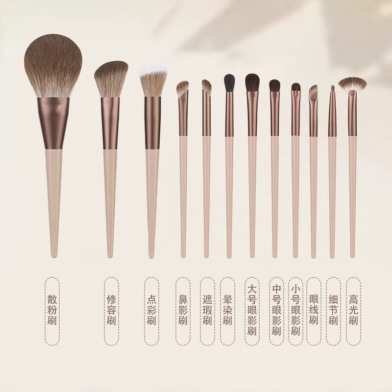 摩卡化妆刷套装12支全套刷子眼线遮瑕散粉腮红鼻影眼影刷化妆师用