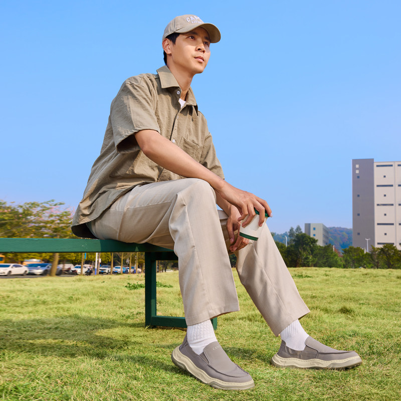 骆驼男鞋2026春季新款防泼水轻盈透气城市舒适软底休闲一脚蹬布鞋