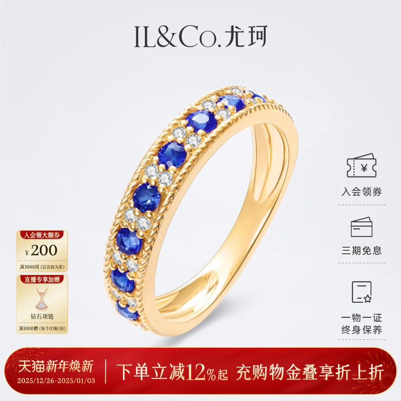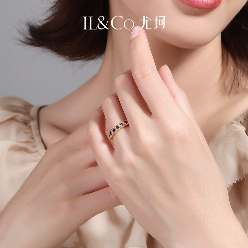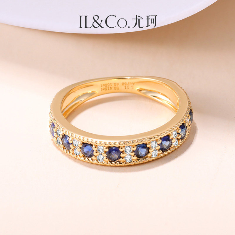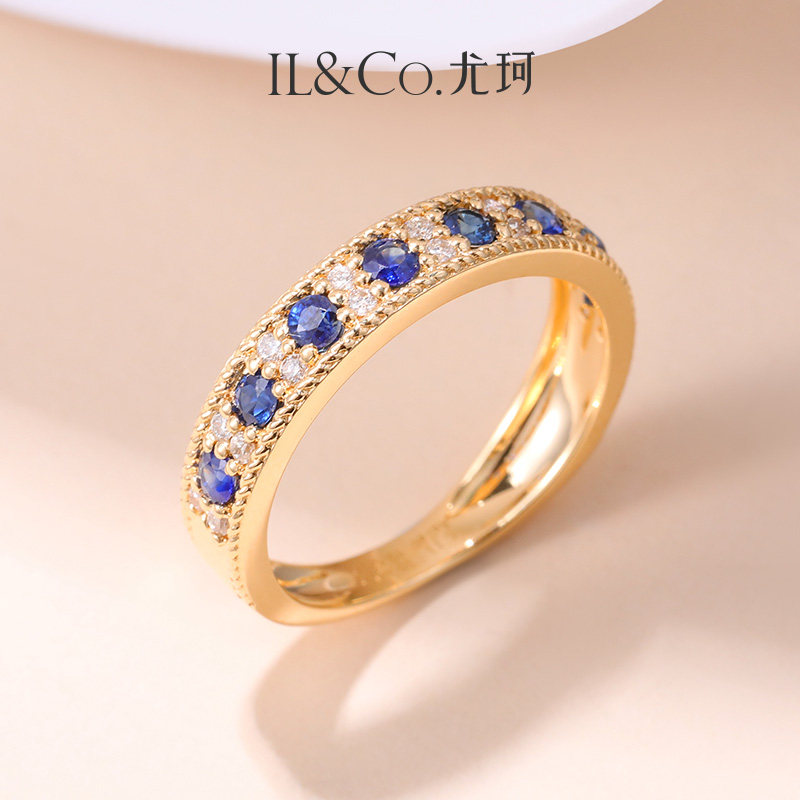 ILCO尤珂「巴黎旧梦」18K经典彩宝戒指镶钻天然红宝石蓝宝石排戒