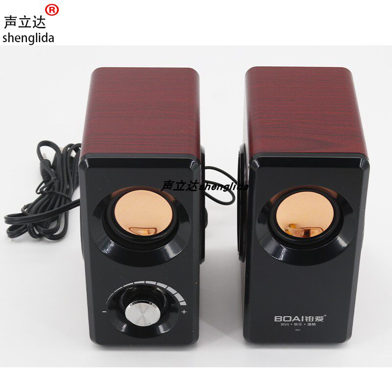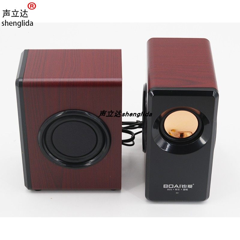 铂爱061木色电脑桌面多媒体小音箱四振膜低音炮喇叭音响可接手机