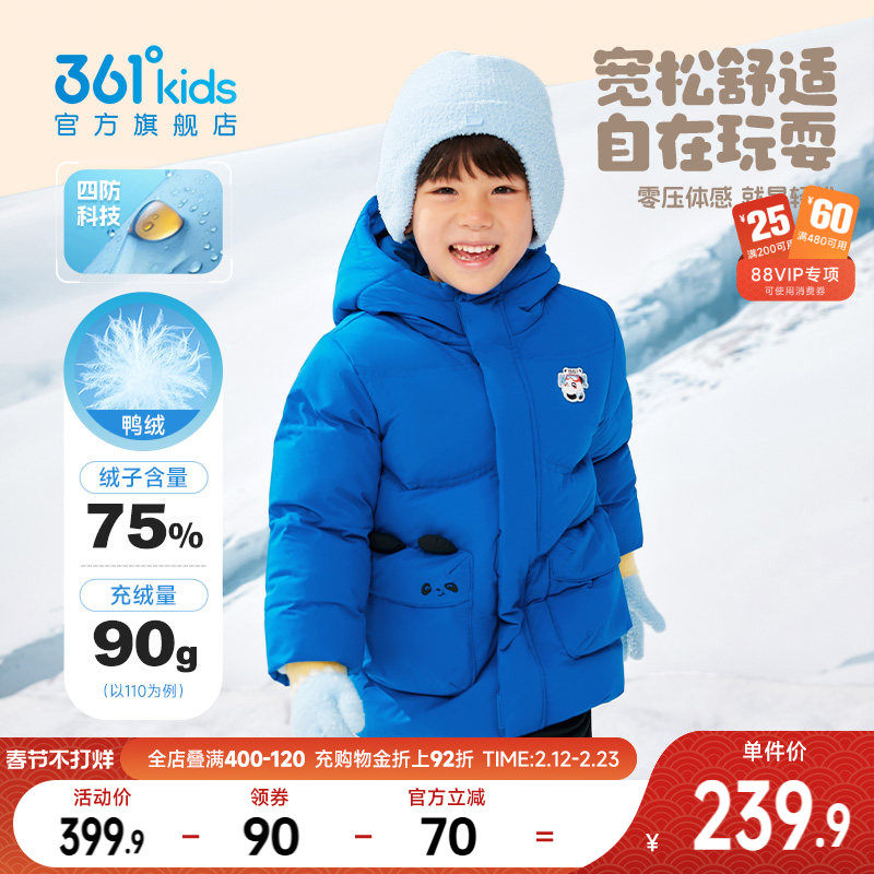 四防科技|361度童装男童连帽中长女童羽绒服冬季新款儿童加厚外套