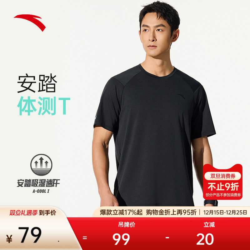 安踏速干T丨动感方格短袖t恤男士2025夏季健身跑步训练服速干上衣