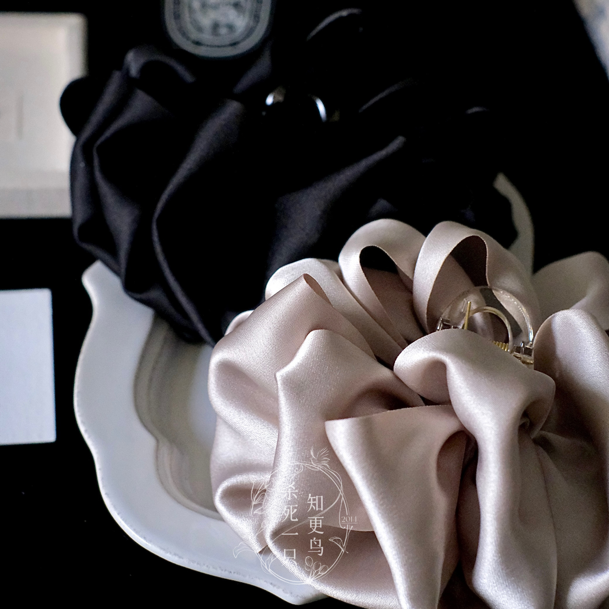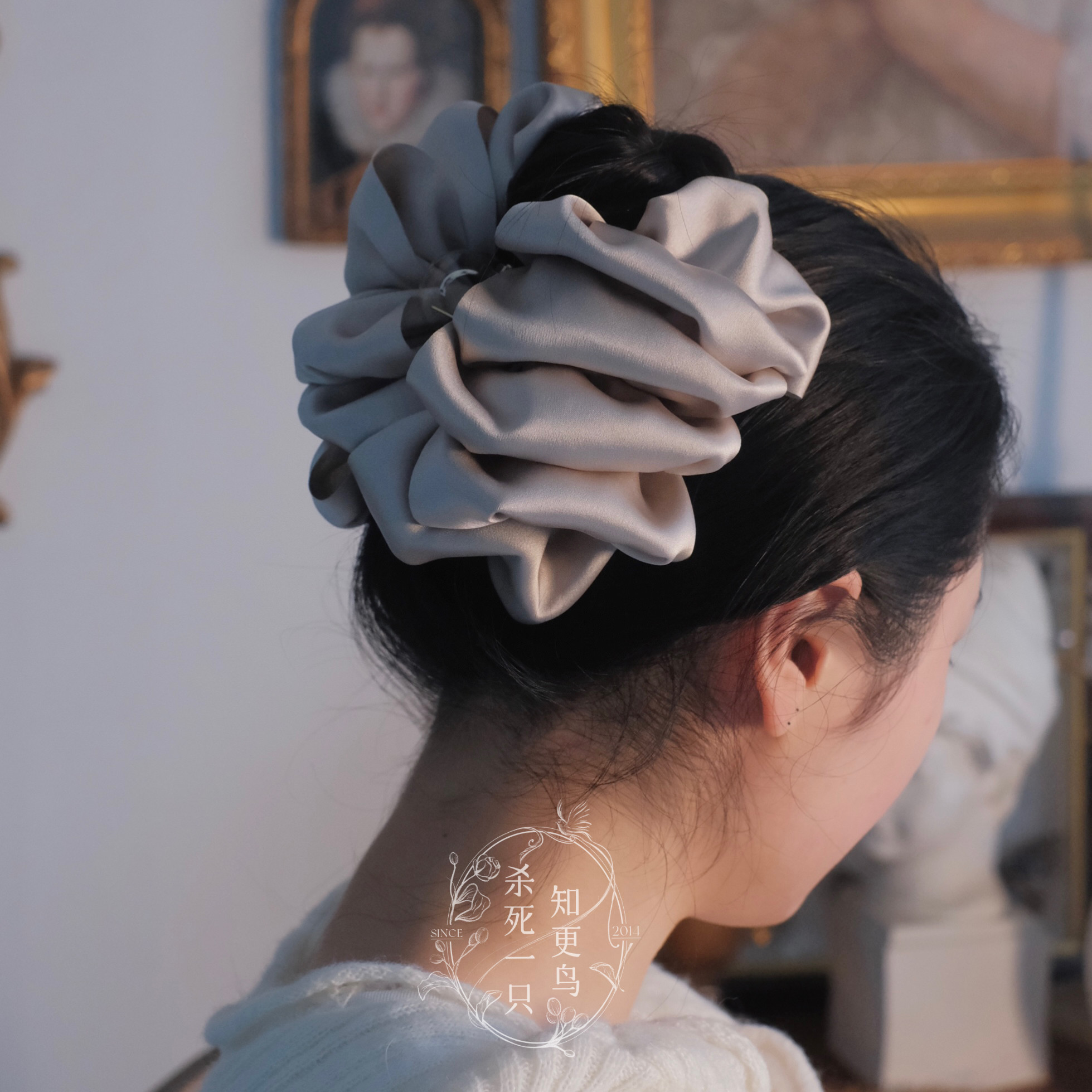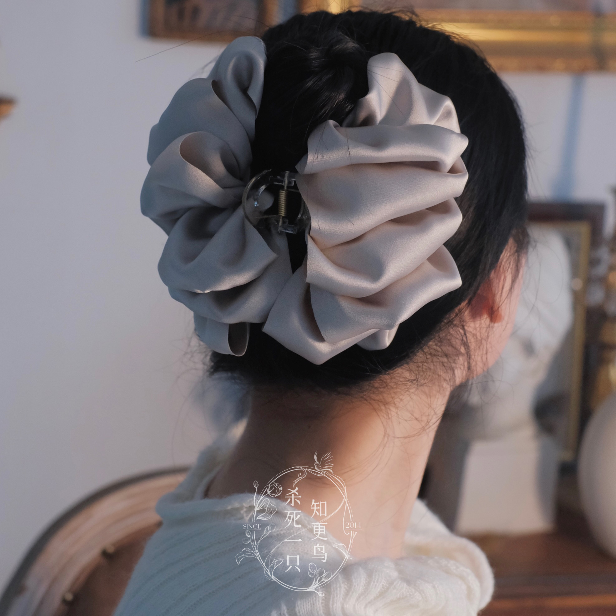 《美术馆日》法式气质简约多层缎面布艺抓夹大号鲨鱼夹发量少发夹