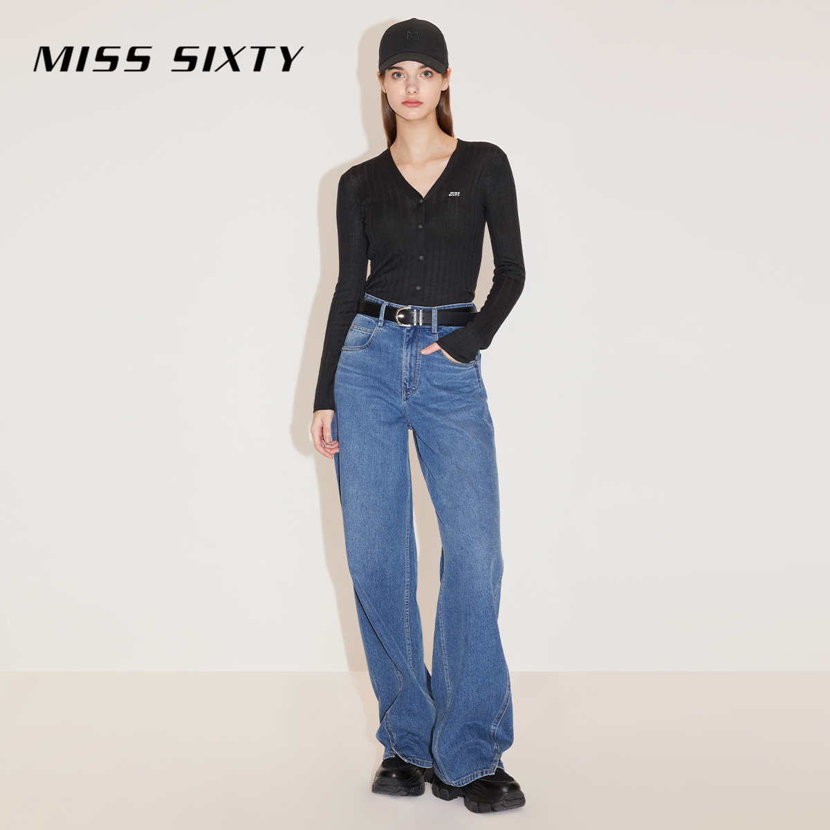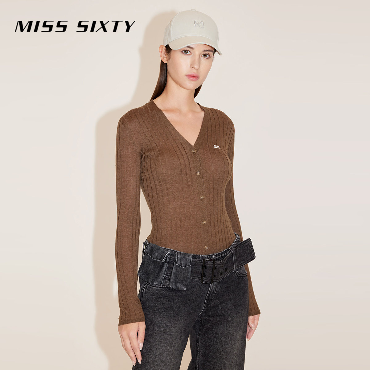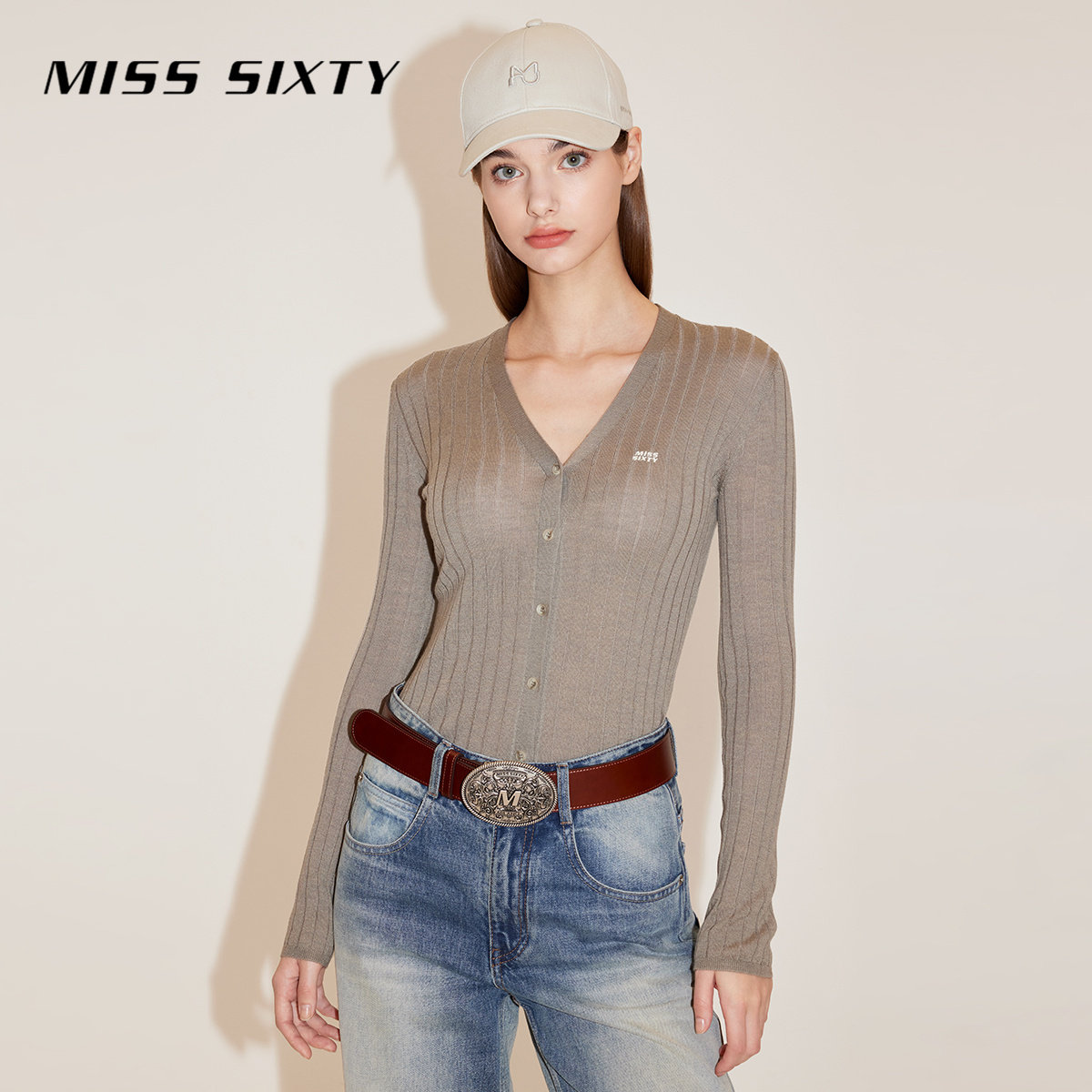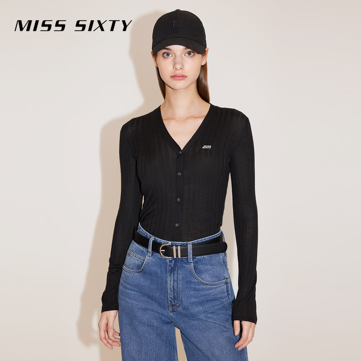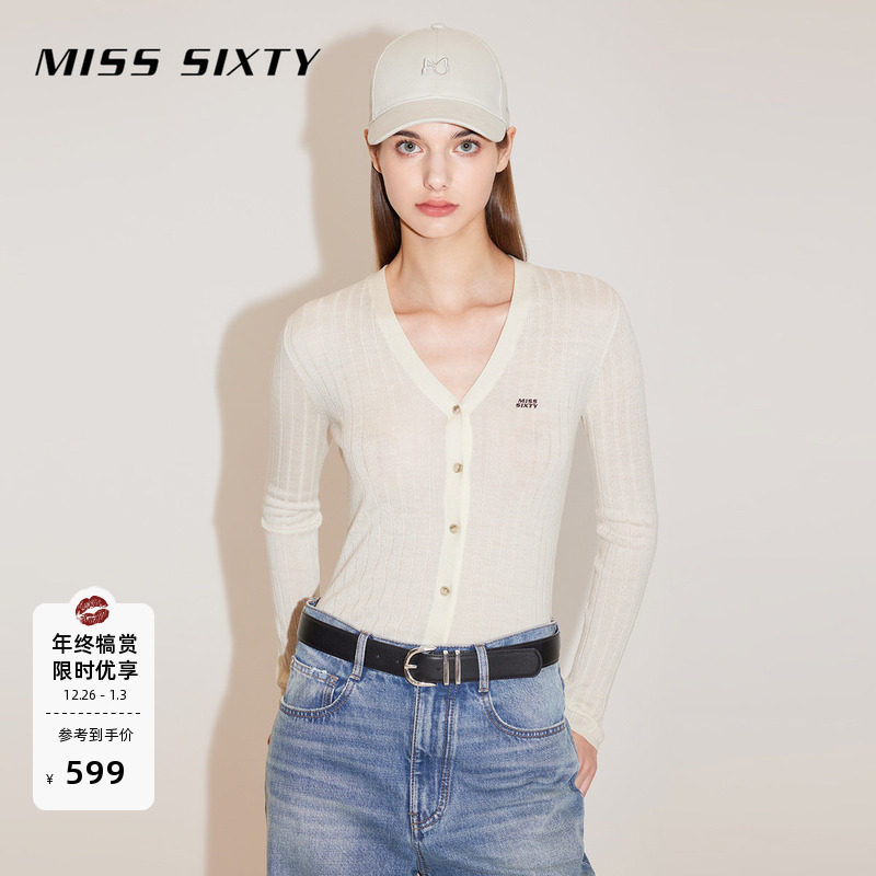 【杨幂同款】Miss Sixty羊毛针织衫女简约V领修身气质上衣毛衣
