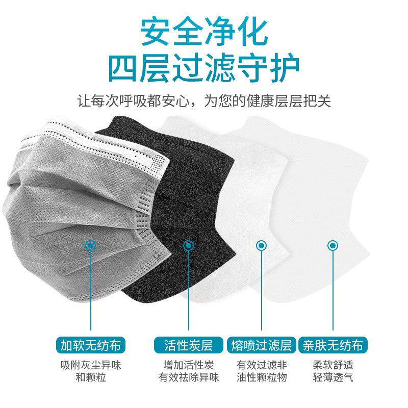 加厚口罩防甲醛实验室一次性防护活性炭四层单独包装防尘防二手烟