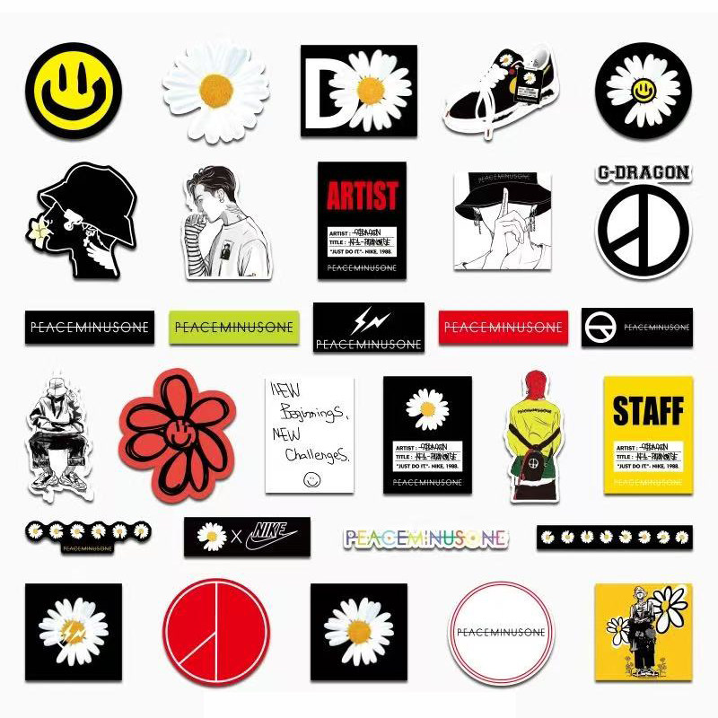 权志龙同款GD小雏菊行李箱贴纸防水不留胶旅行箱改造装饰贴纸潮牌