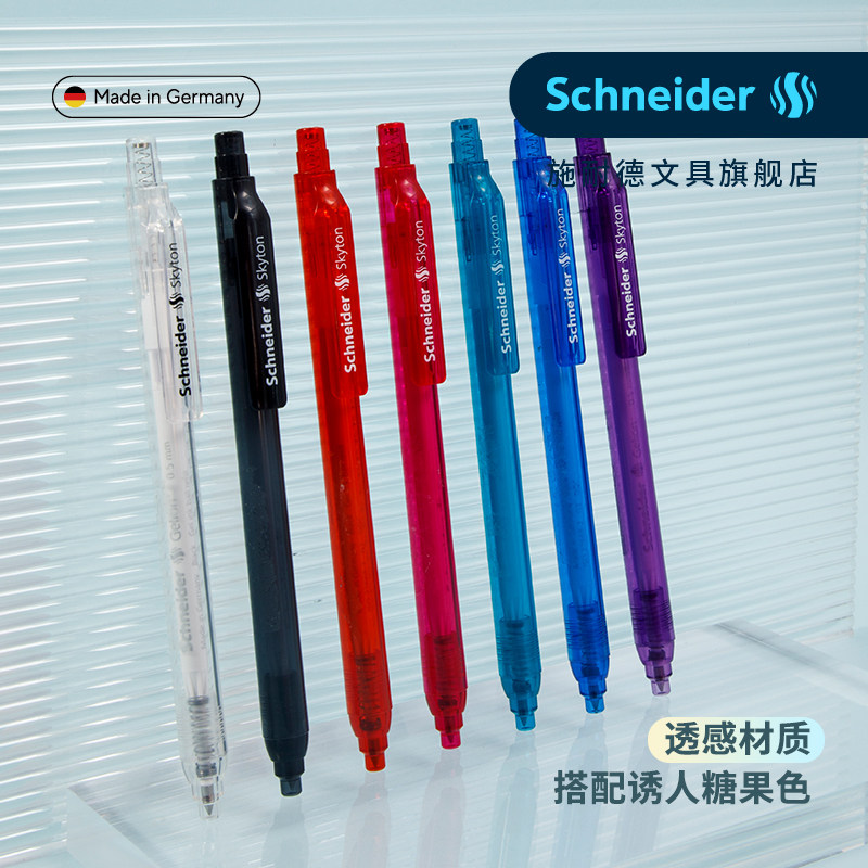 【1秒速干】多省包邮施耐德中性笔斯凯同skyton德国进口学生专用刷题考试黑笔0.5mm按动水笔透明多巴胺糖果色