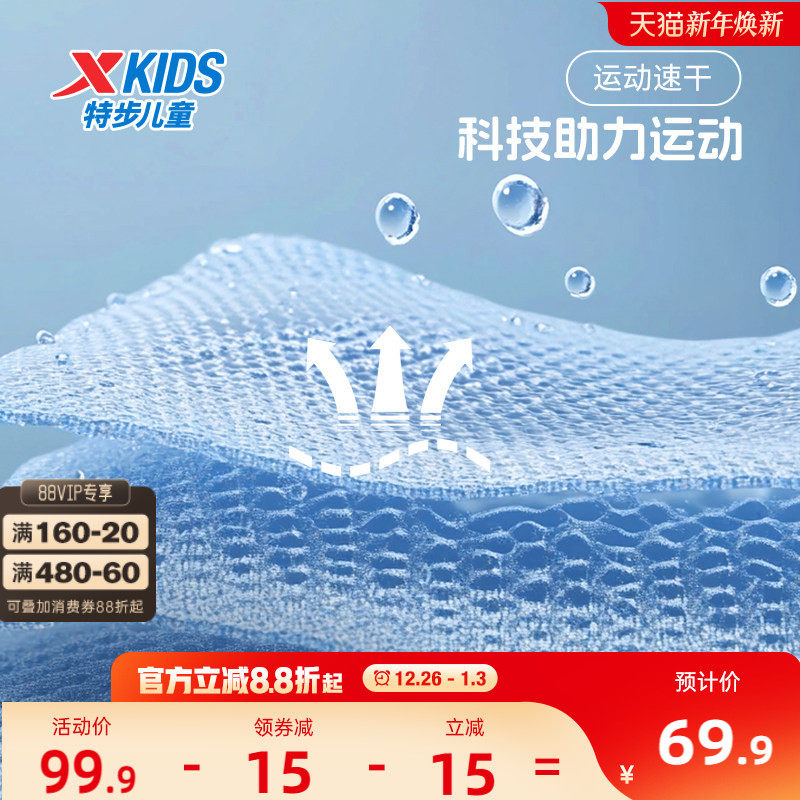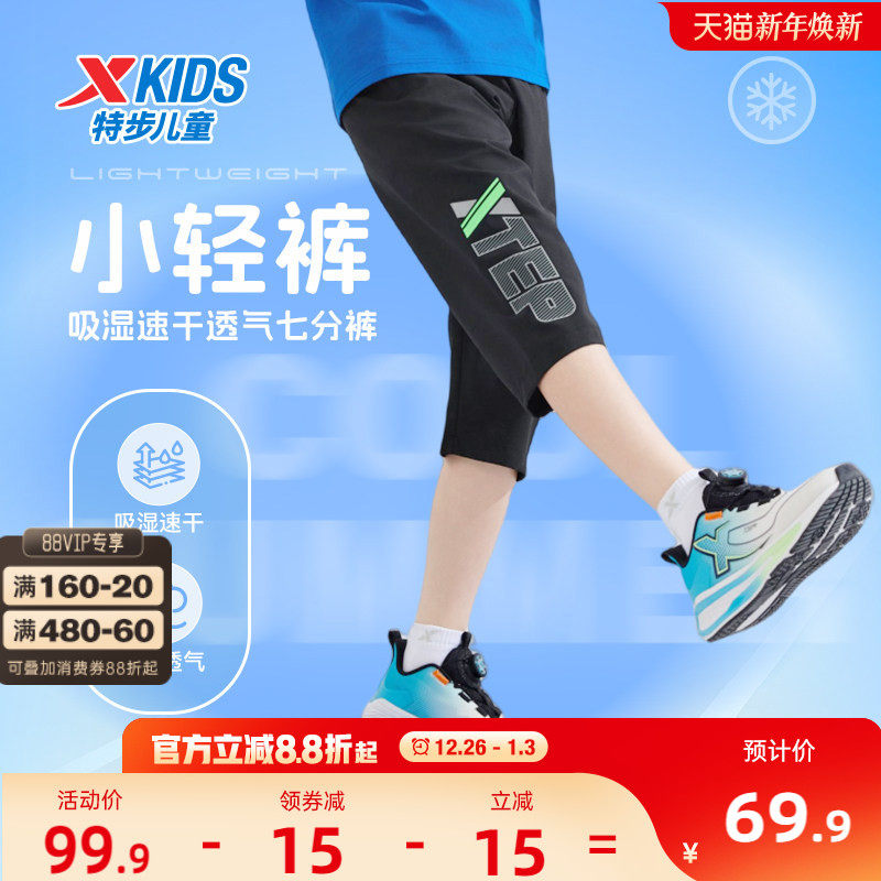 特步童装男童速干运动裤2025夏季新款大童七分裤儿童裤子印花夏装