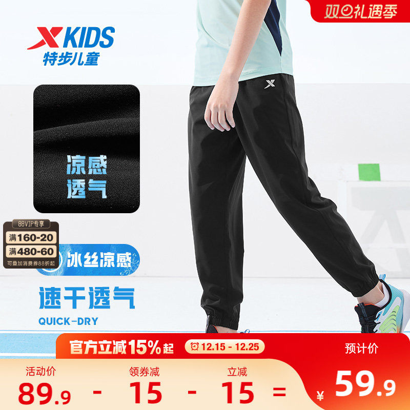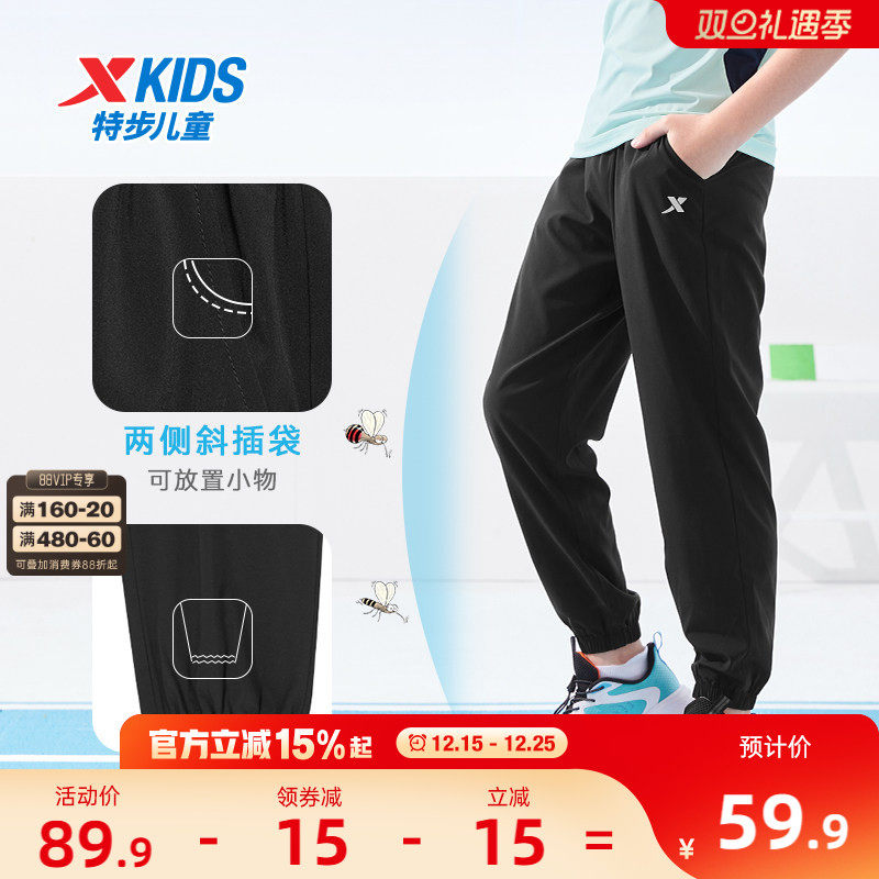 特步童装男童裤子薄款2025夏季新款儿童大童夏装速干运动裤防蚊裤