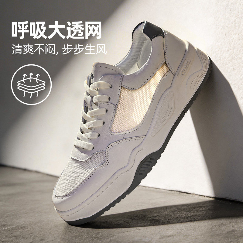 骆驼2026春季新款男鞋透气网鞋小白鞋厚底增高百搭男士休闲板鞋