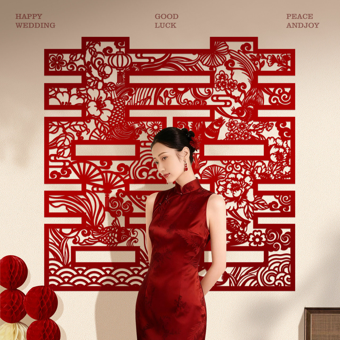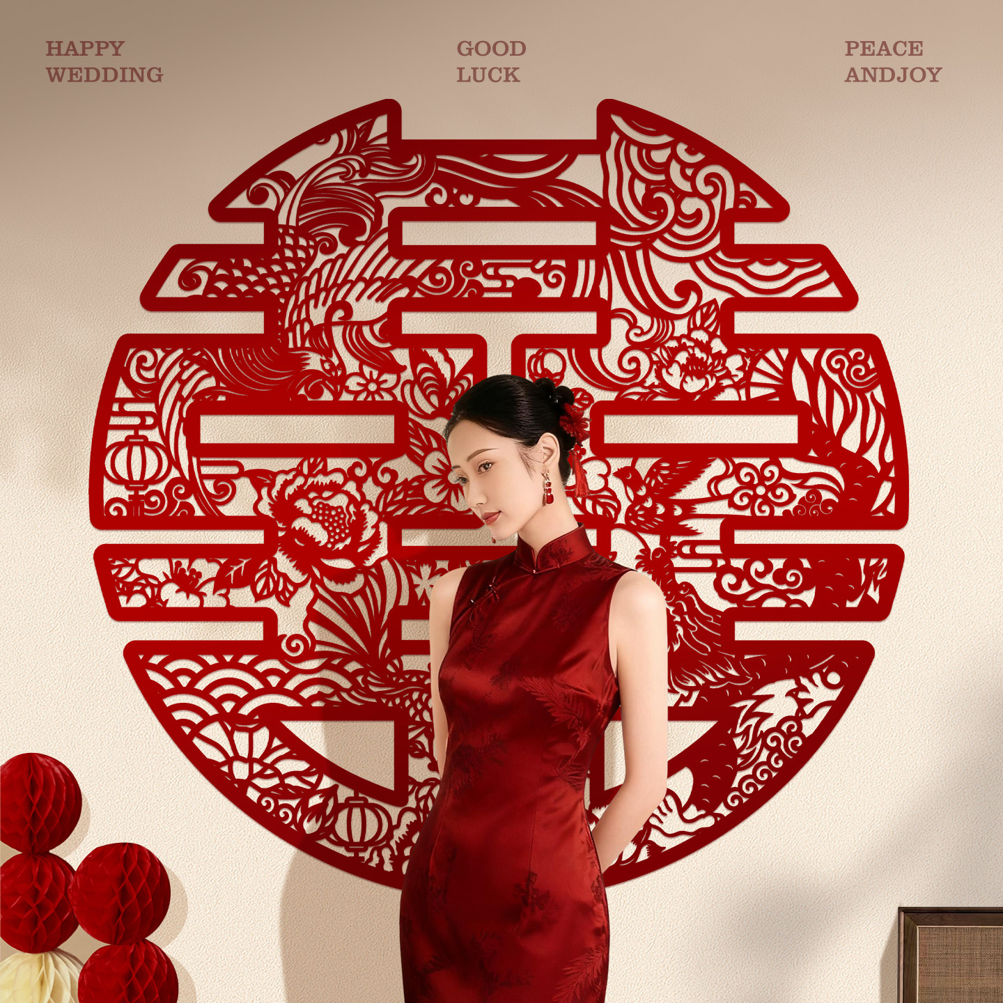 2025新款超大喜字婚房婚礼布置喜字贴装饰结婚背景墙氛围红色楼梯