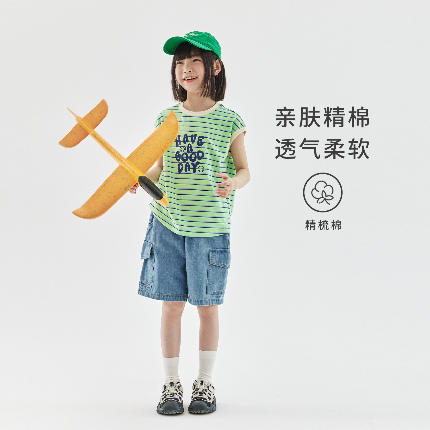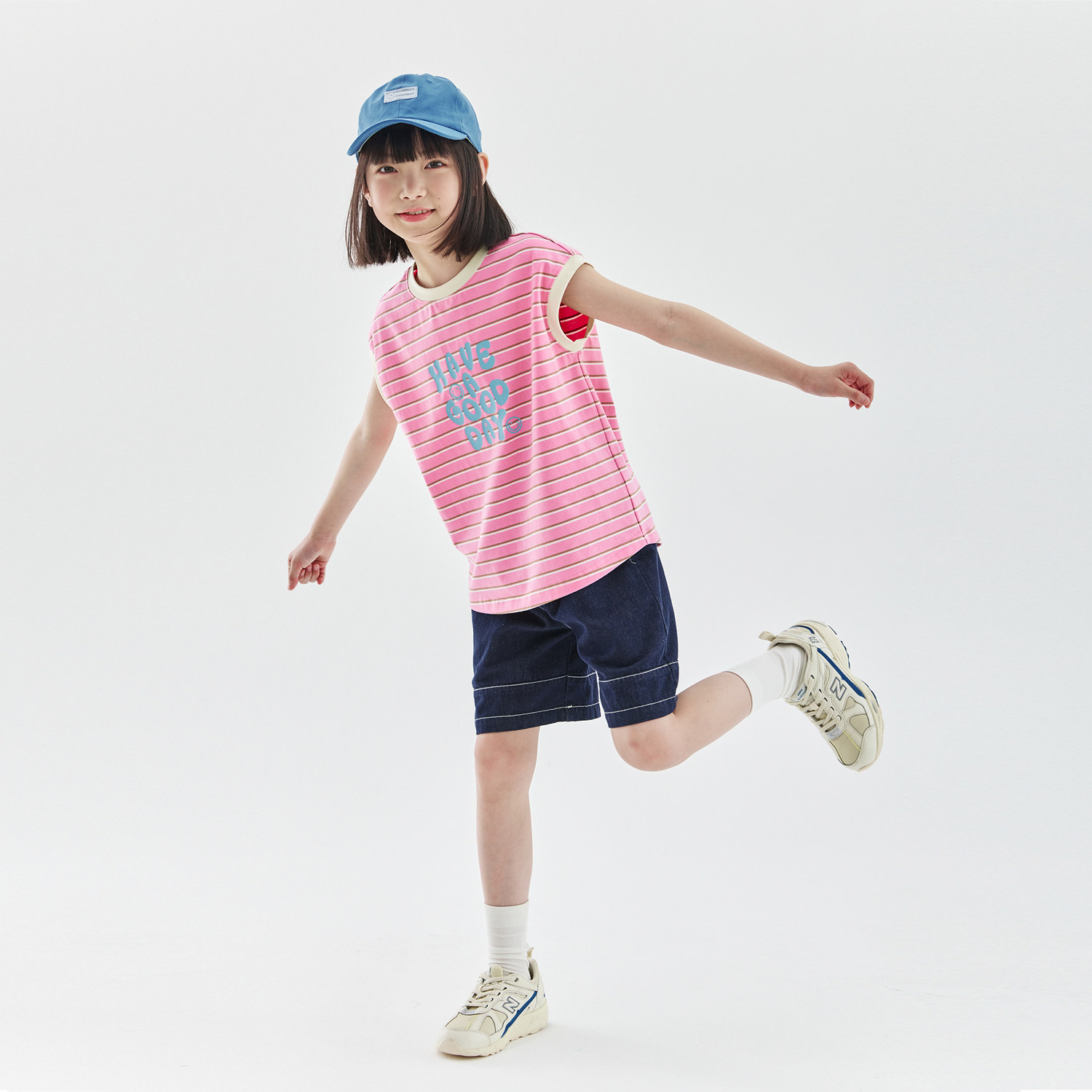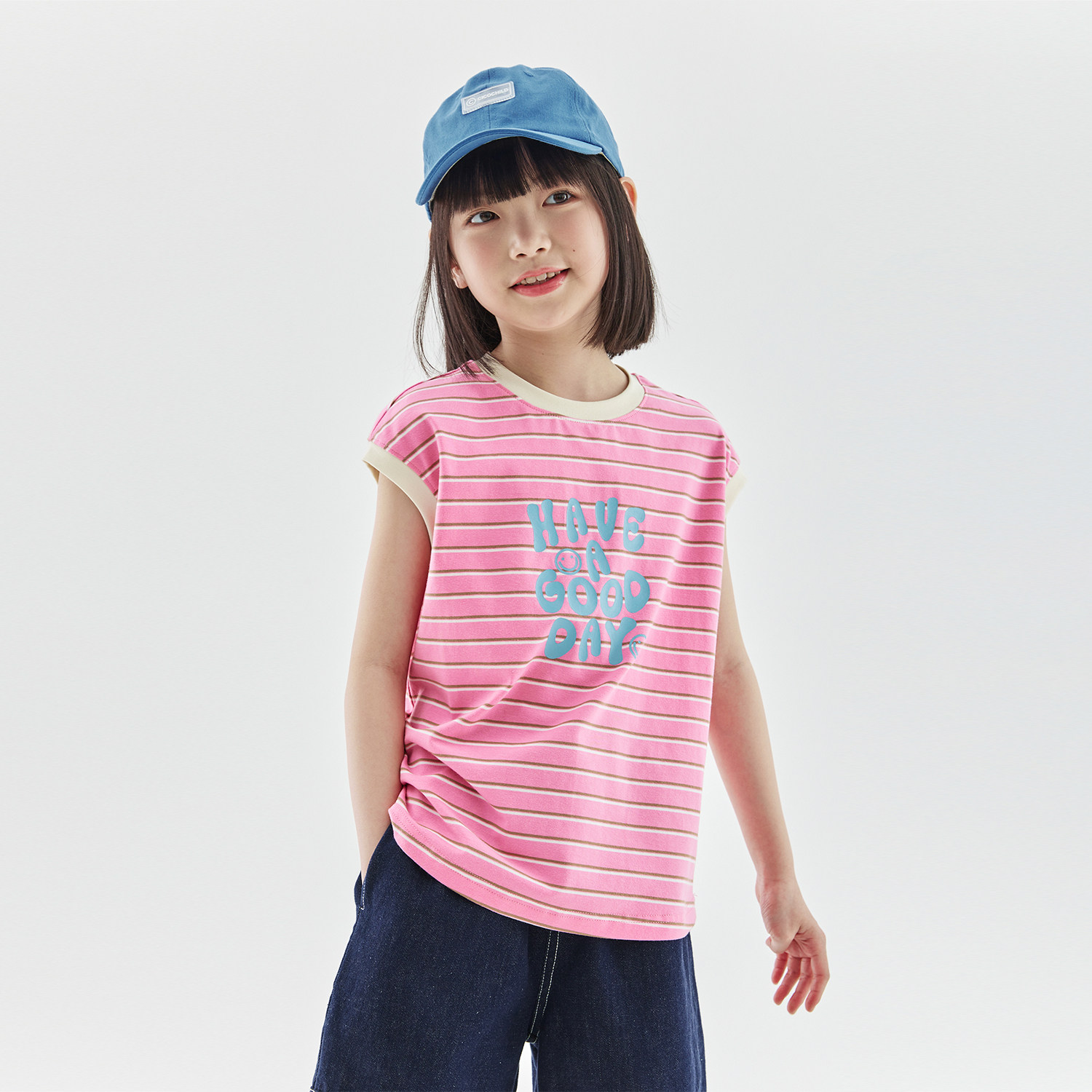 cicochild26夏新品儿童字母印花条纹t恤亲子款多巴胺撞色无袖上衣