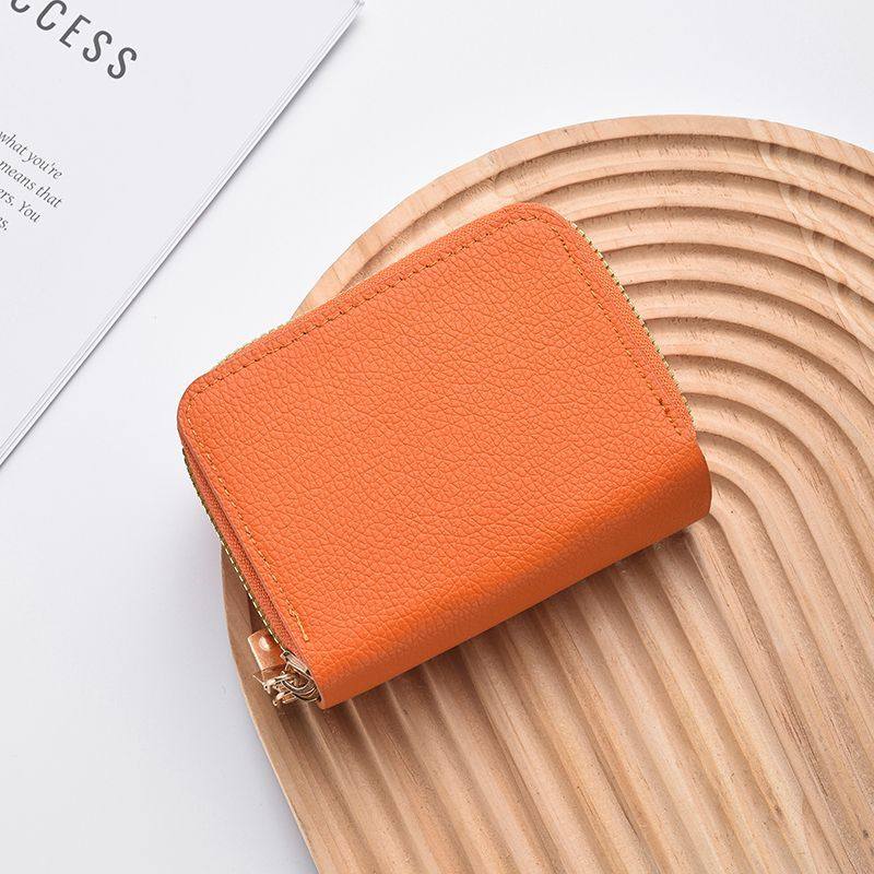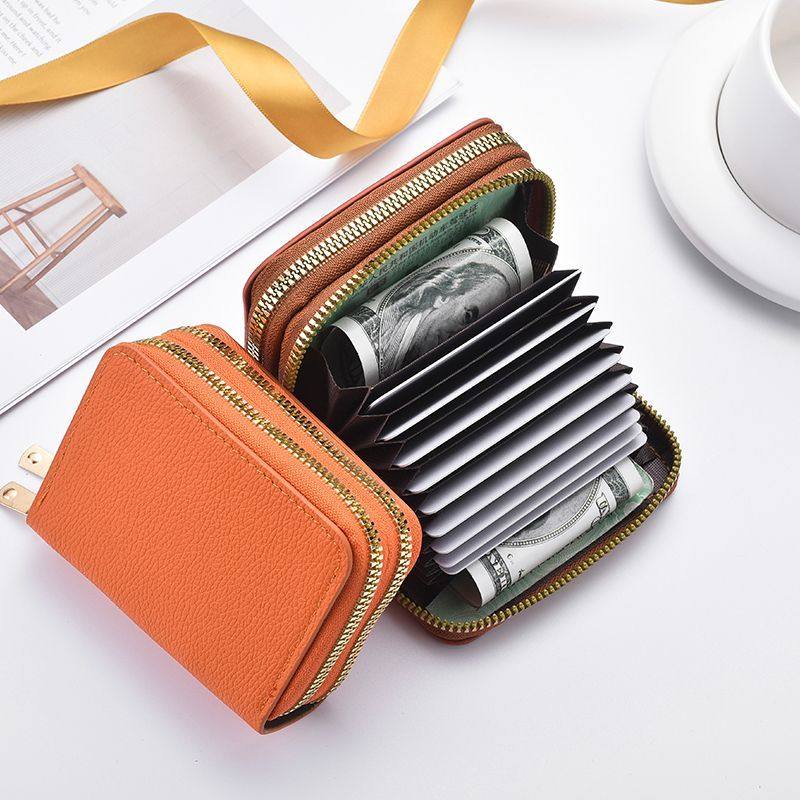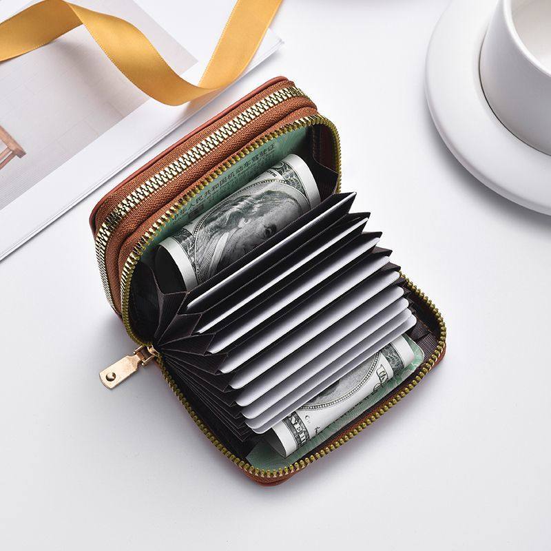 真皮质感短款双拉链卡包女时尚风琴卡片证件包小巧多卡位零钱包