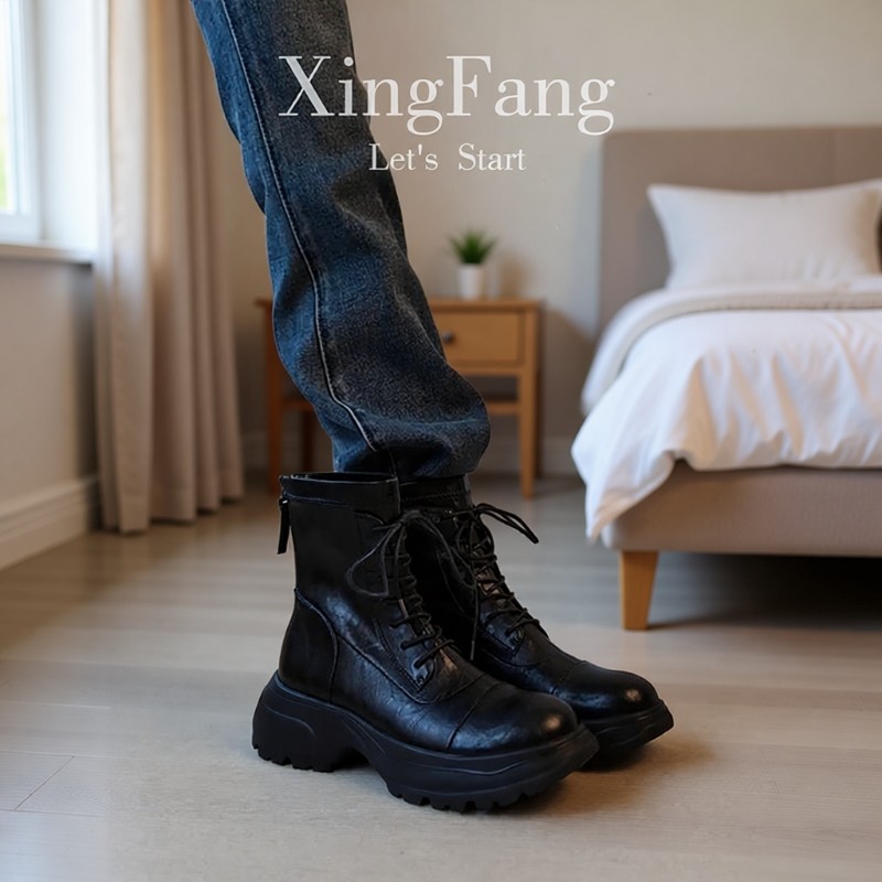 增高厚底复古女款2025新款小众方头松糕厚底jk短靴小个子马丁靴