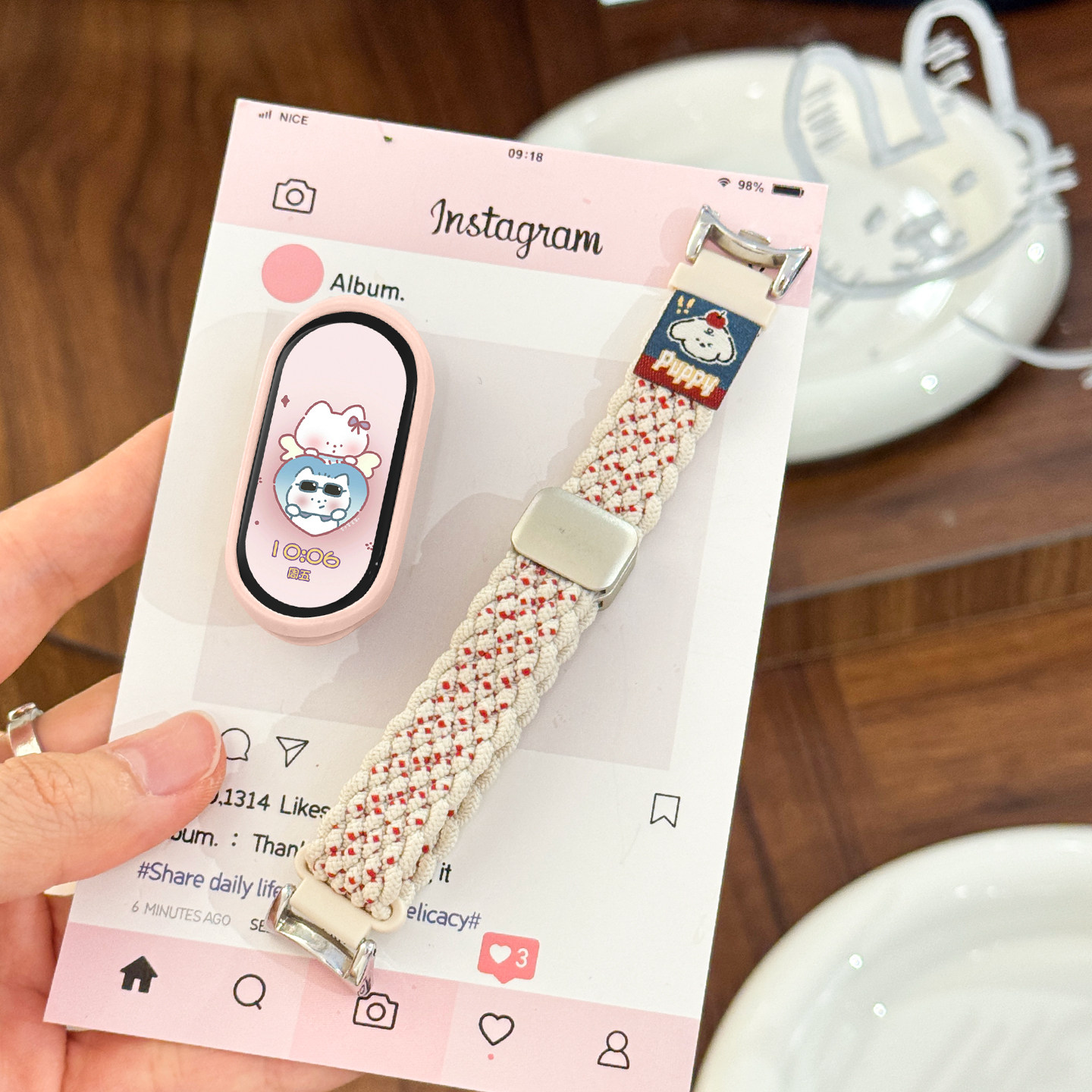 苹果小狗适用小米手环10表带新品9可爱磁吸编织猫咪布标8女生Pro腕带运动智能7陶瓷版原配接口6男黑色白色
