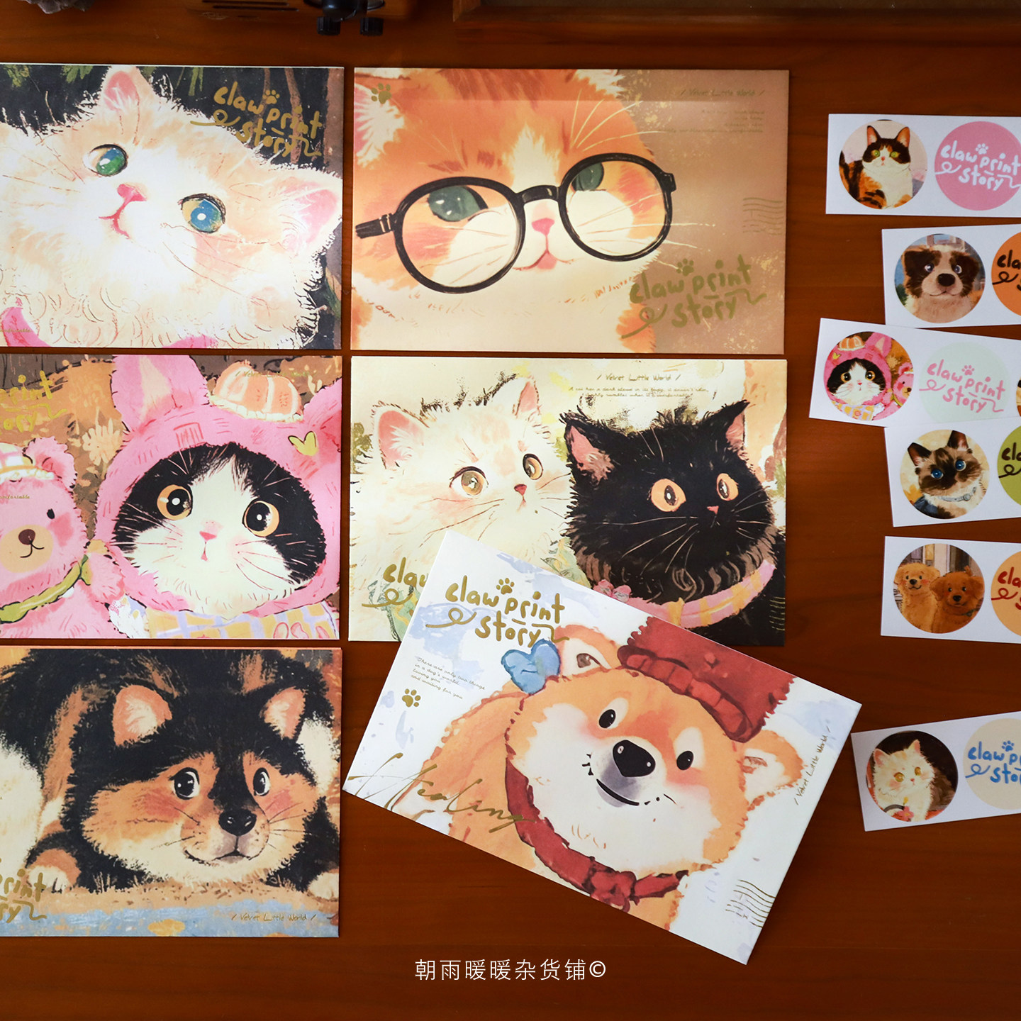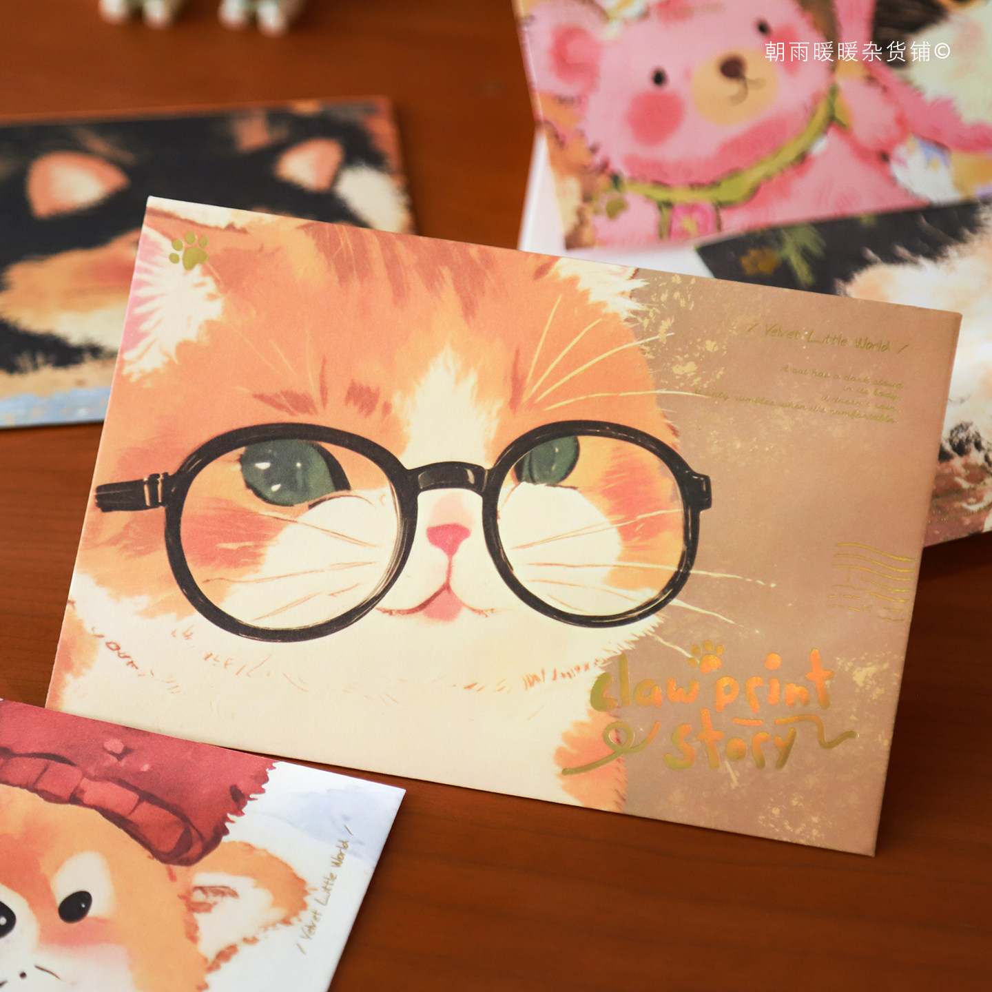 朝雨 喵咪狗狗信封高级感ins风可爱萌宠动物手写情书送男友女友