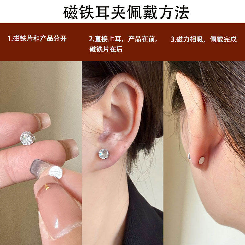 免打耳洞磁吸耳钉女耳蜗钉男无耳洞耳夹耳骨夹耳饰超闪锆石耳骨钉