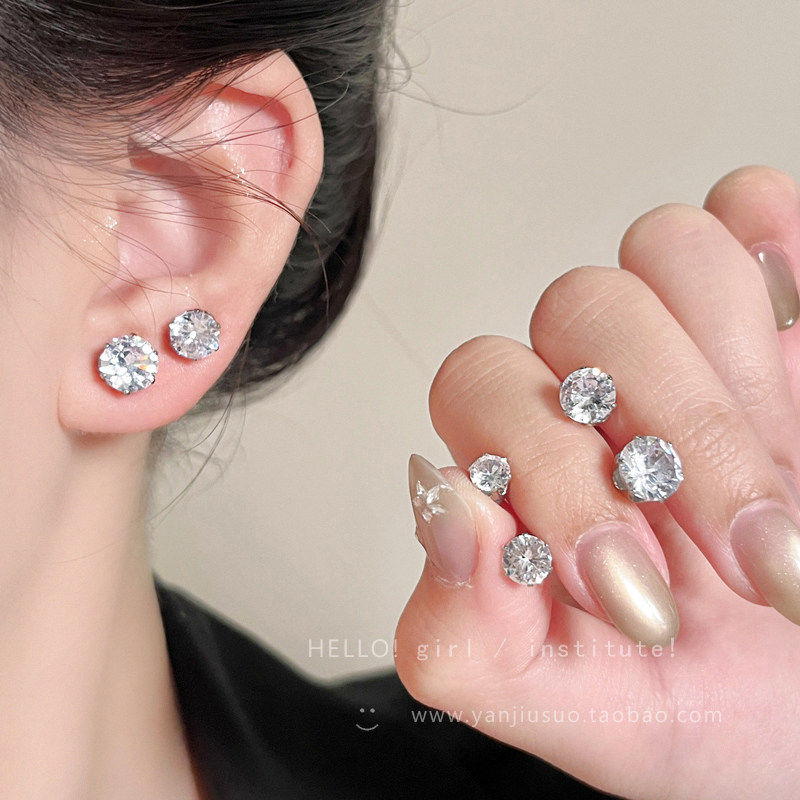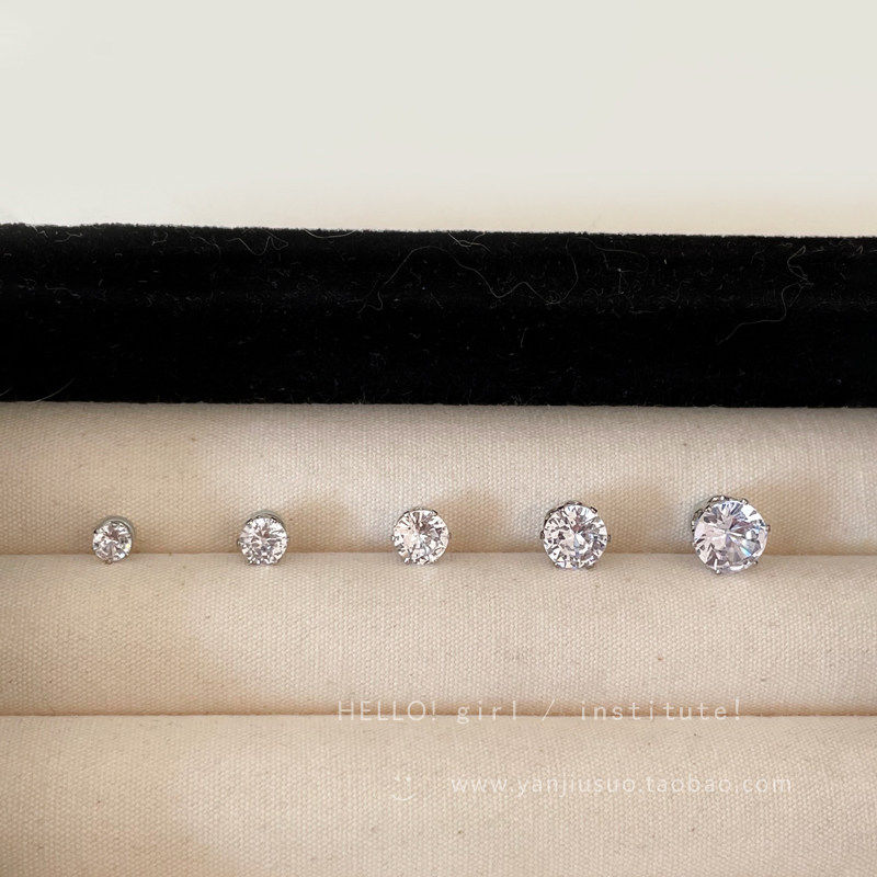 999纯银耳钉女养耳洞耳骨钉小众高级感锆石耳蜗钉水钻耳环银耳饰