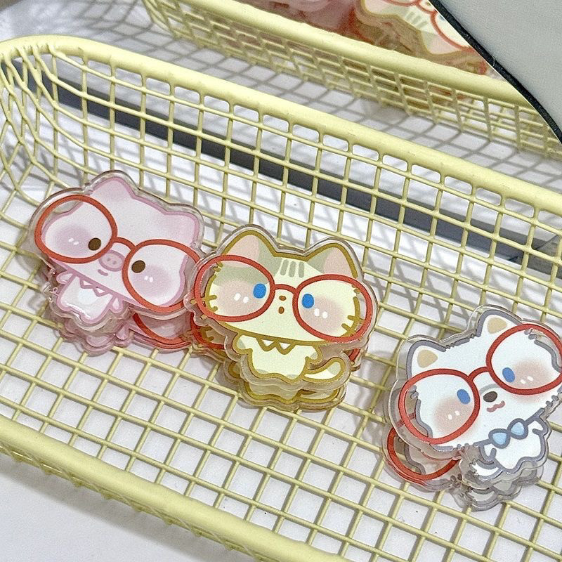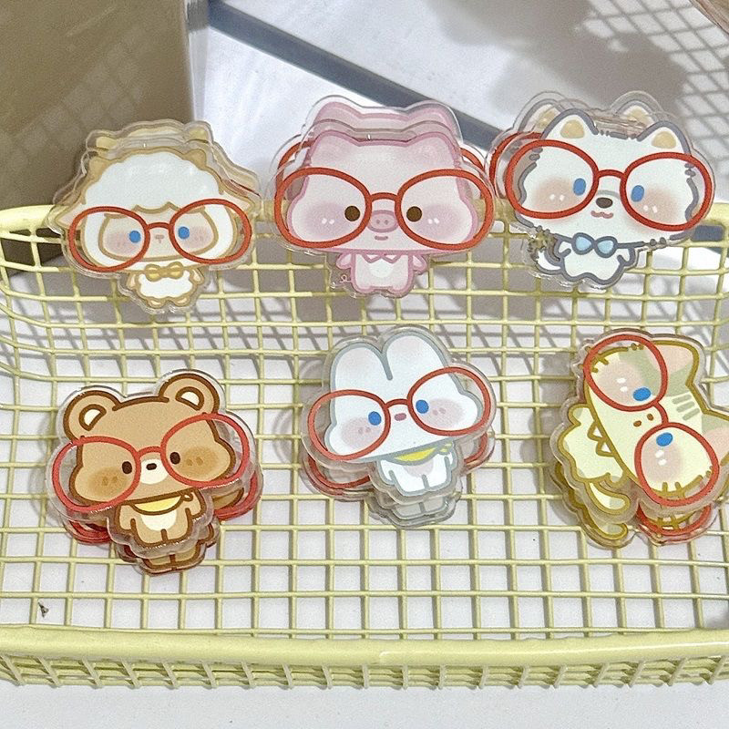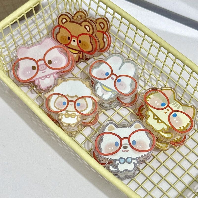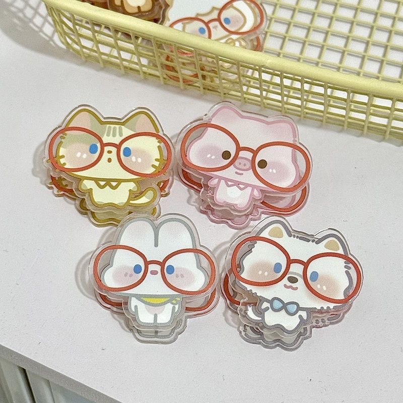 眼镜小动物便签夹卡通ins风高颜值双面夹亚克力PP夹收纳夹试卷夹