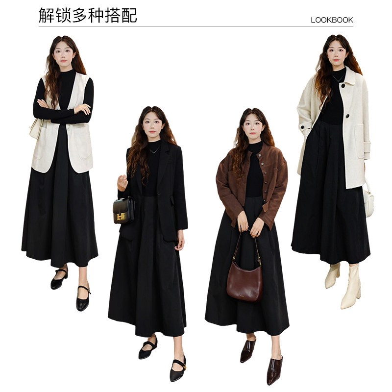 晚白2025秋冬爆款轻奢法式赫本风黑色裙子气质小黑裙长袖连衣裙女