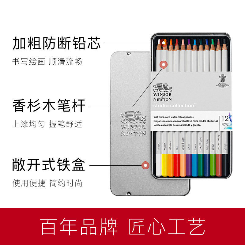 温莎牛顿水溶性彩铅油性彩色铅笔专业手绘美术彩色素描铅笔套装初学者绘画填色笔