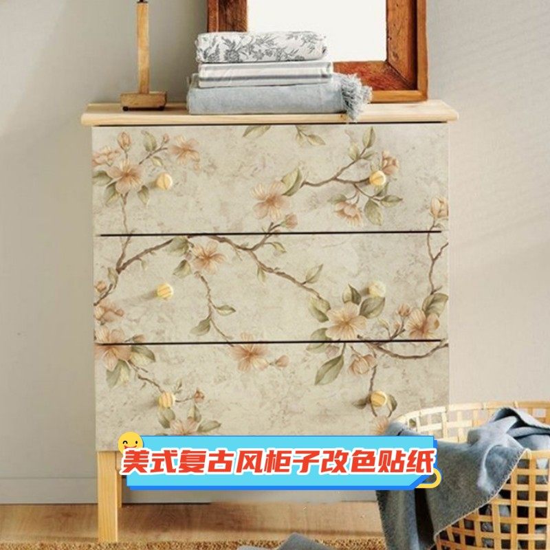 美式贴纸柜子衣柜橱柜鞋柜装饰旧家具改色翻新贴复古田园带花墙纸