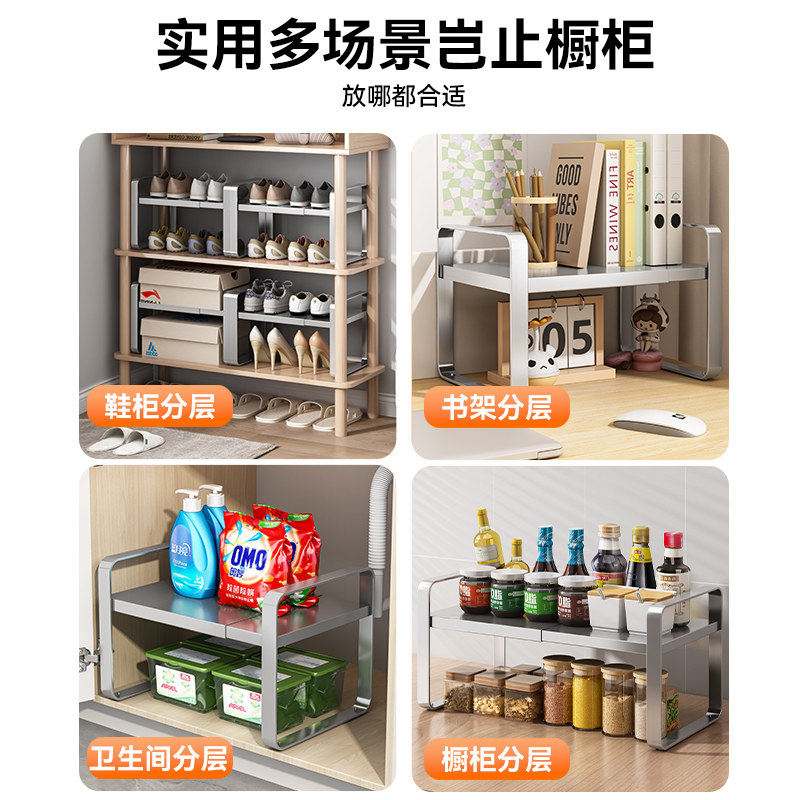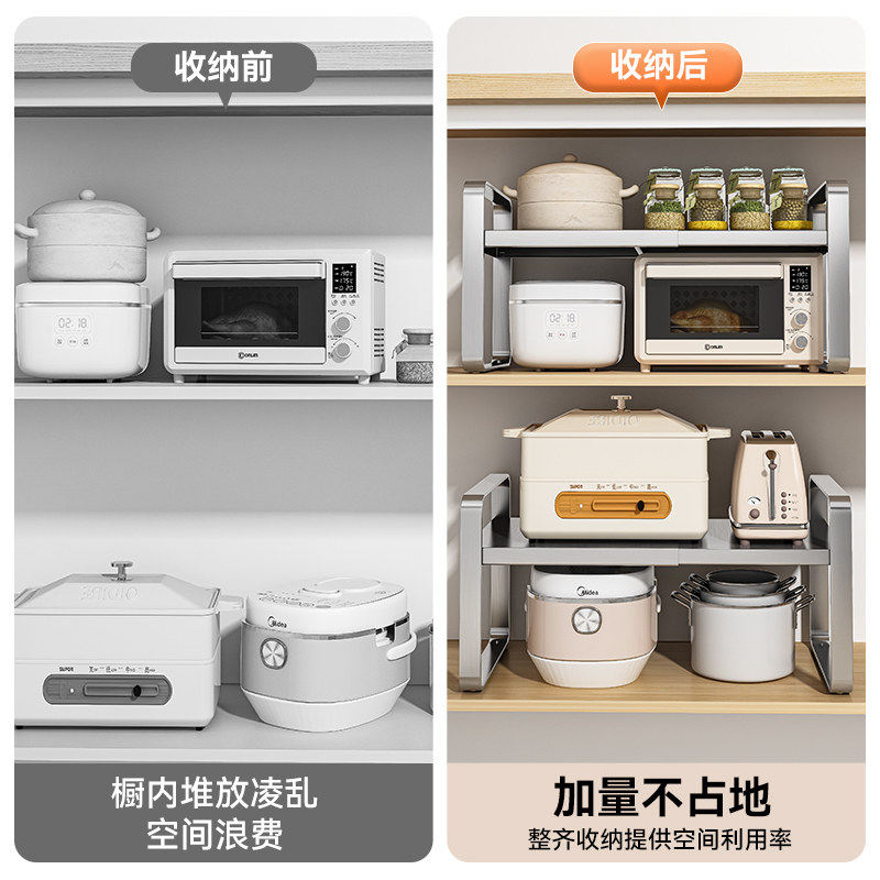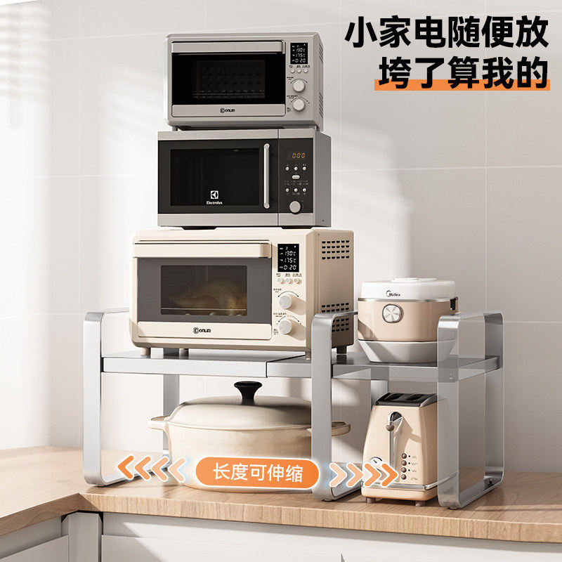 304不锈钢厨房置物架橱柜分层架可伸缩台面锅具收纳架子微波炉