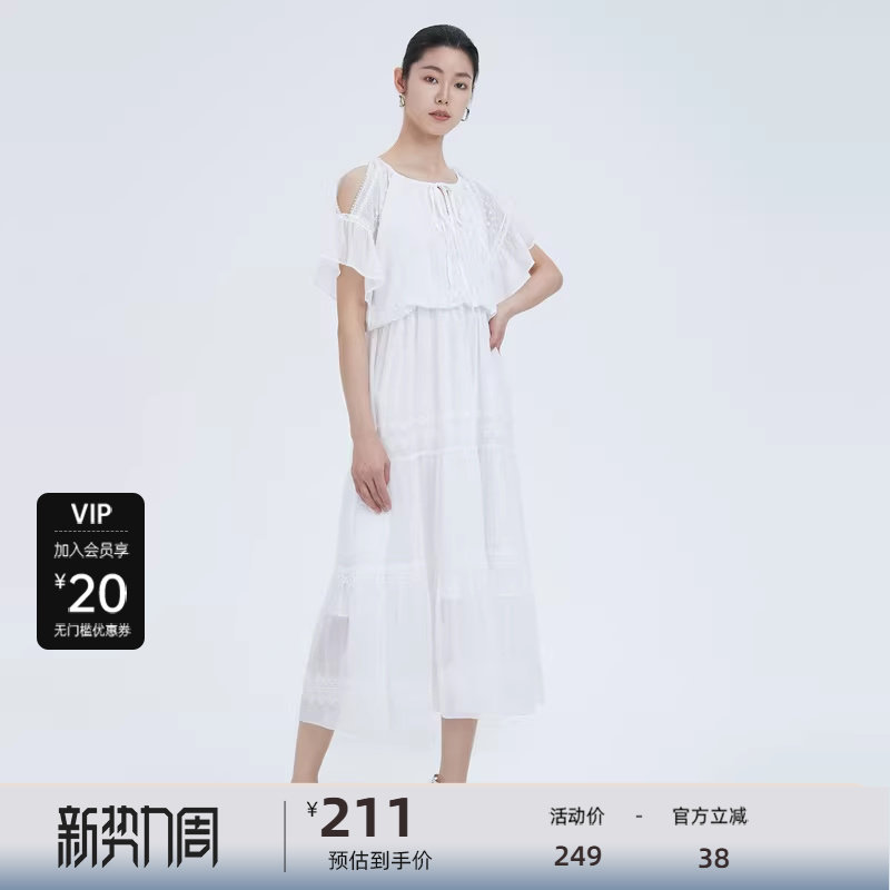 圆领连衣裙 露肩设计 泡泡袖