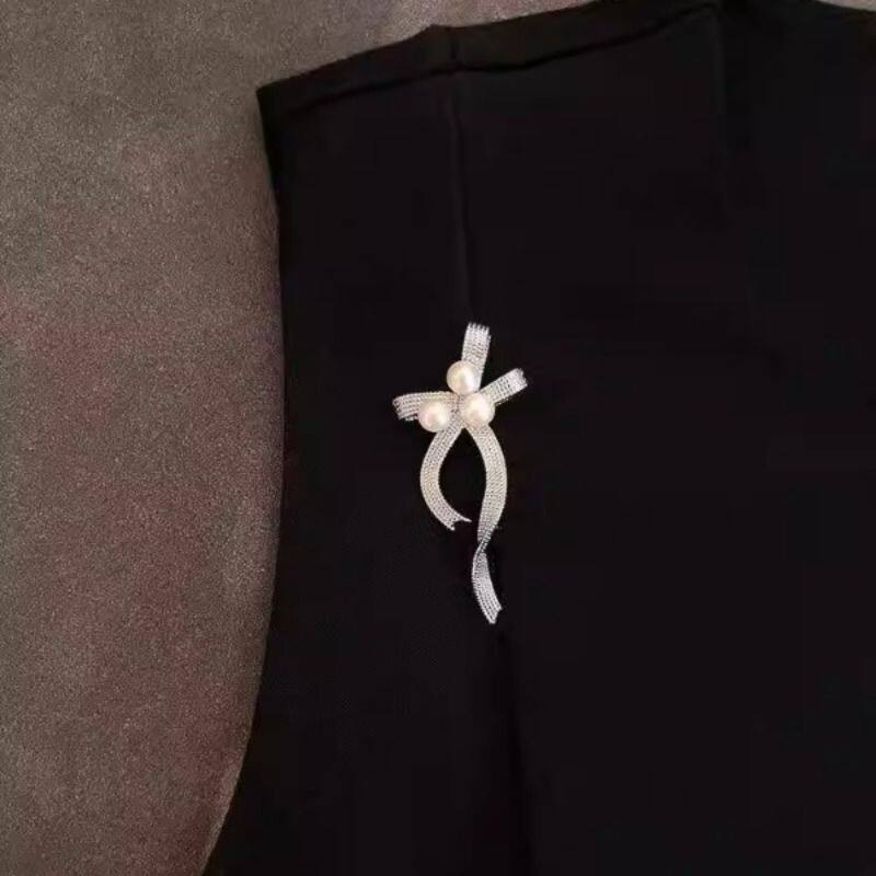 【珀光蝶结】法式复古蝴蝶结仿珍珠胸针简约气质胸花新款精致西装