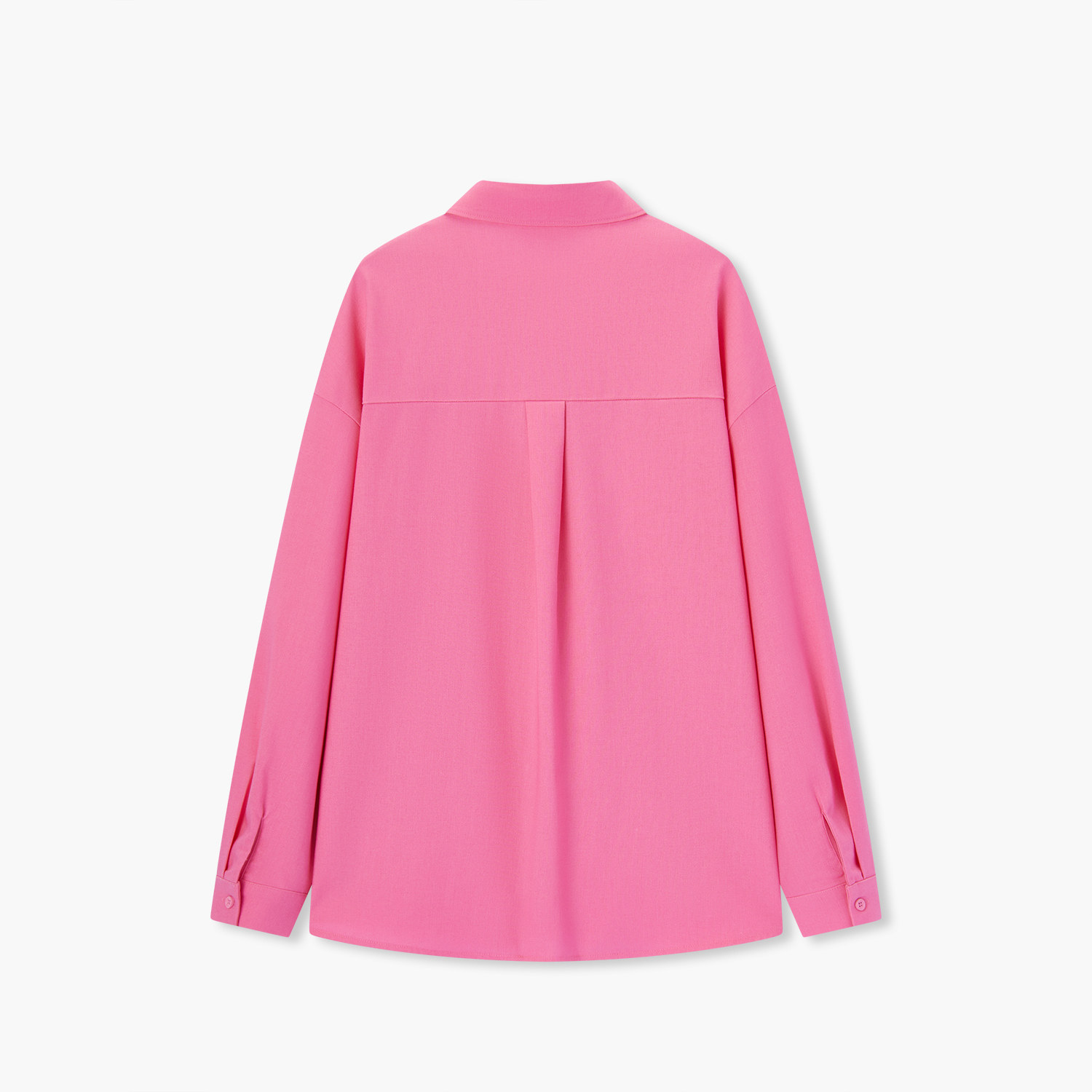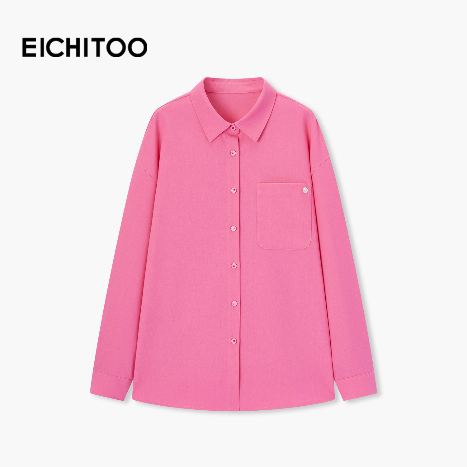 爱居兔多巴胺穿搭芭比粉翻领衬衫女2026年春季新款含亚麻休闲外套