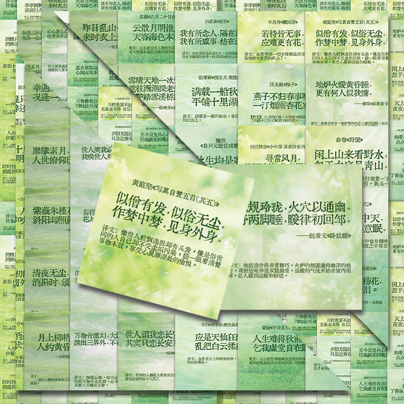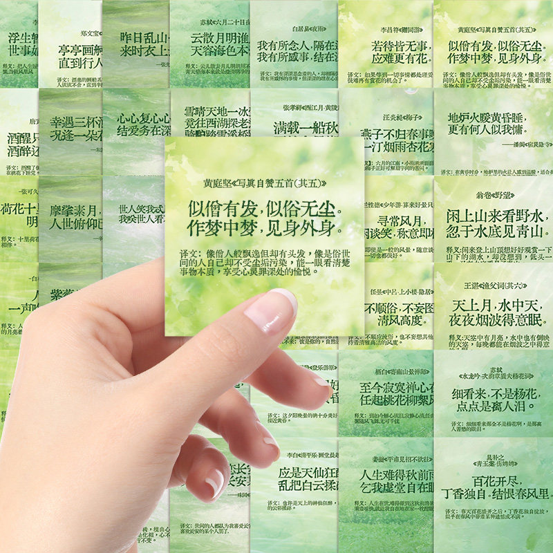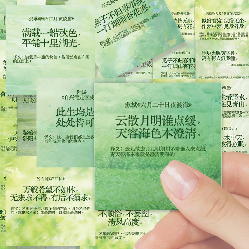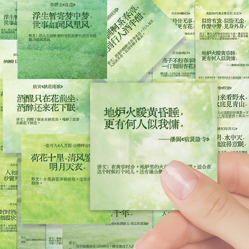 120张绝美诗词贴纸唯美文字古诗手账素材自粘贴diy手机壳贴画