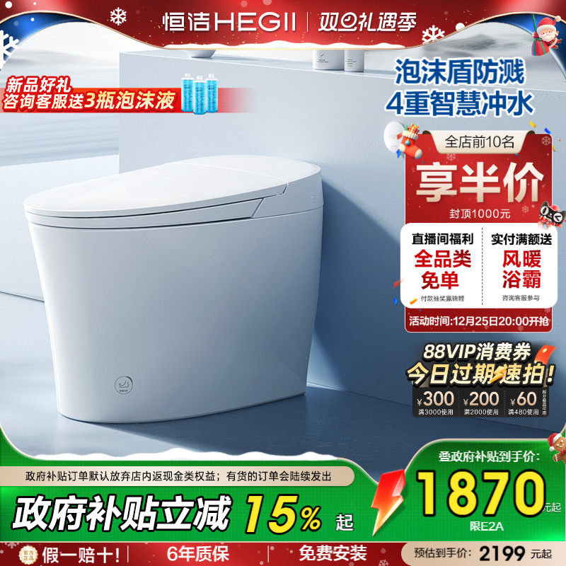 【新品】恒洁轻智能马桶座圈加热坐便器小户型零压泡沫盾防溅E2A