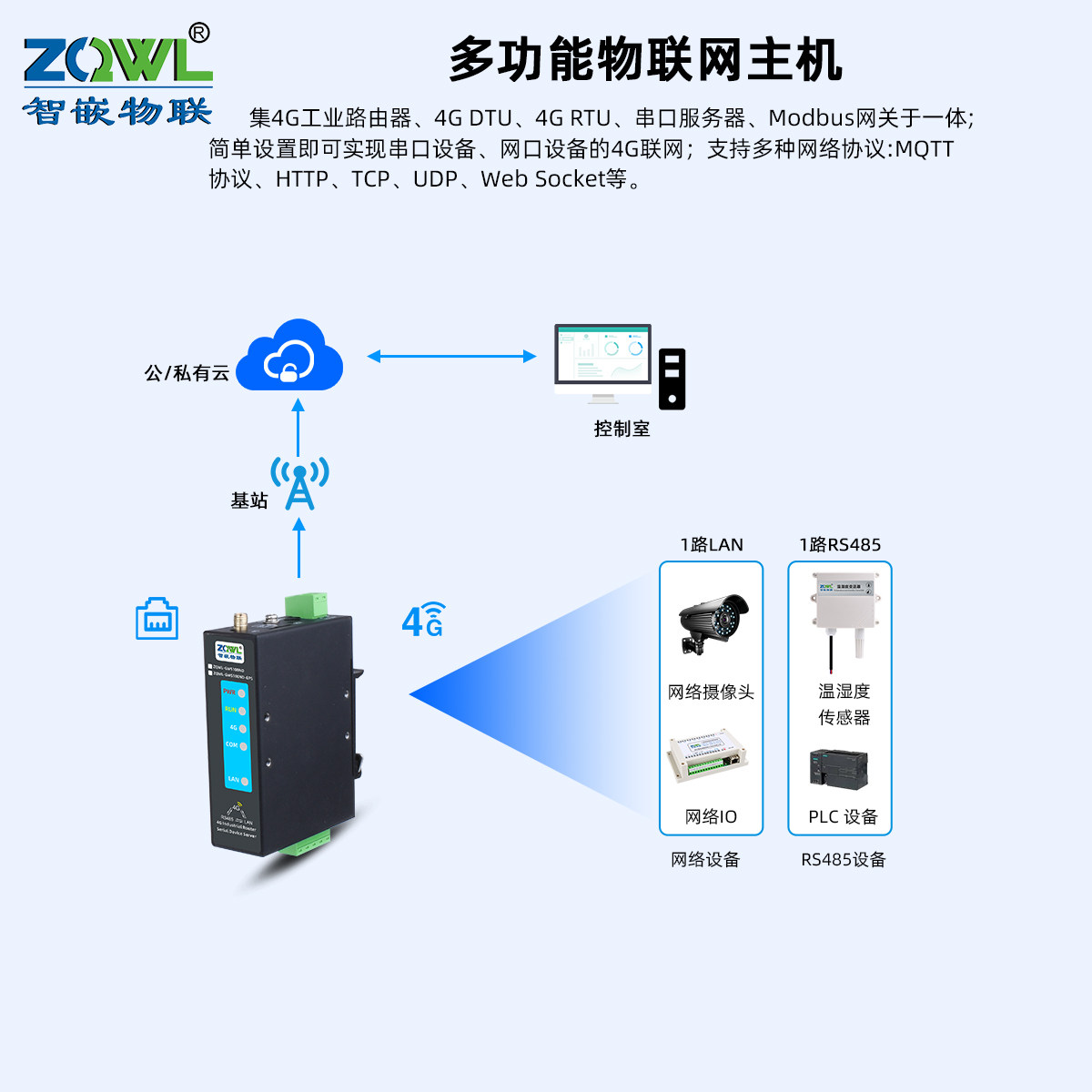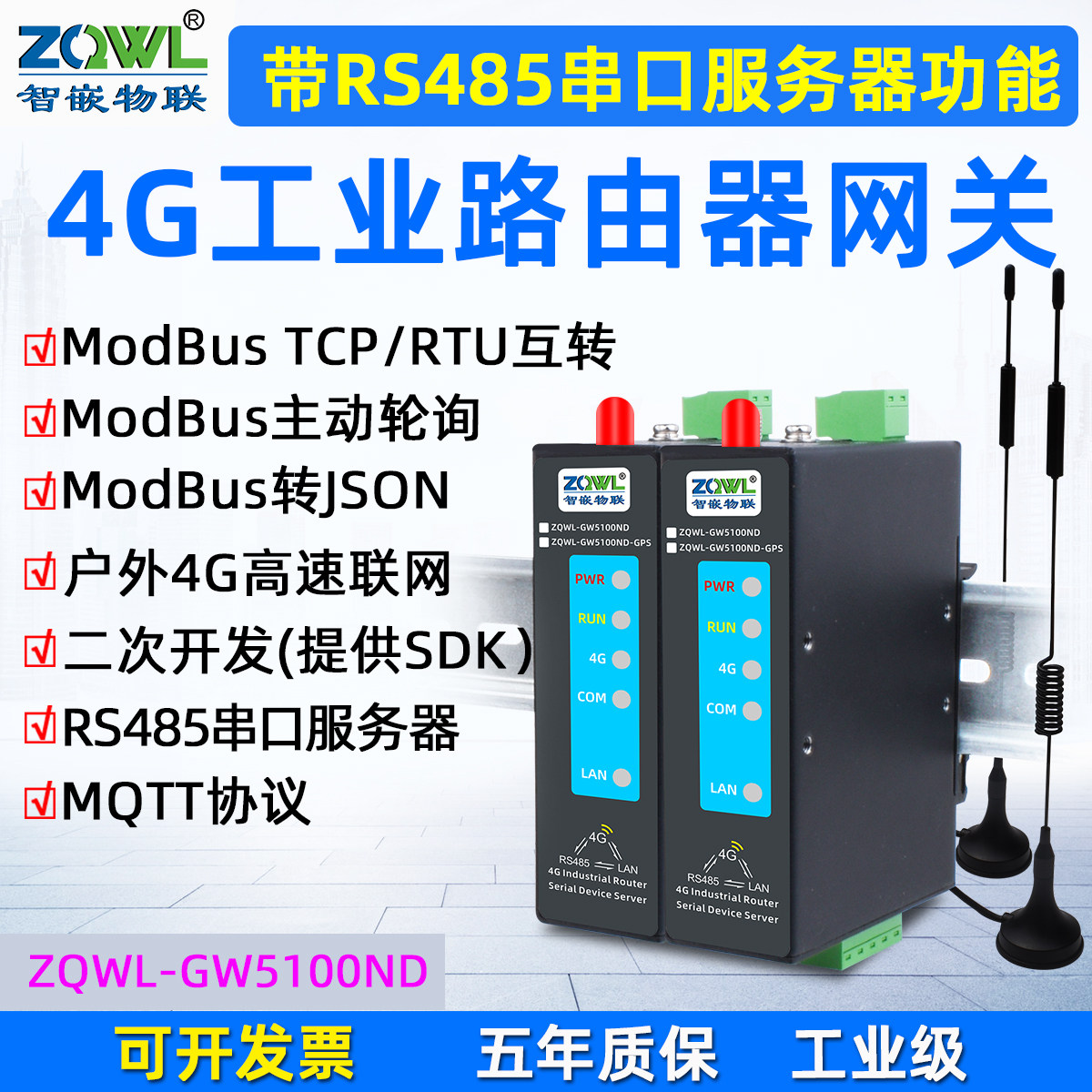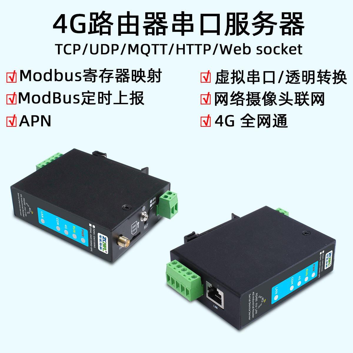 4G路由器2路RS485/422转以太网模块4G无线路由器插卡流量串口服务器modbus网关MQTT/HTTP/JSON工业级户外GSM