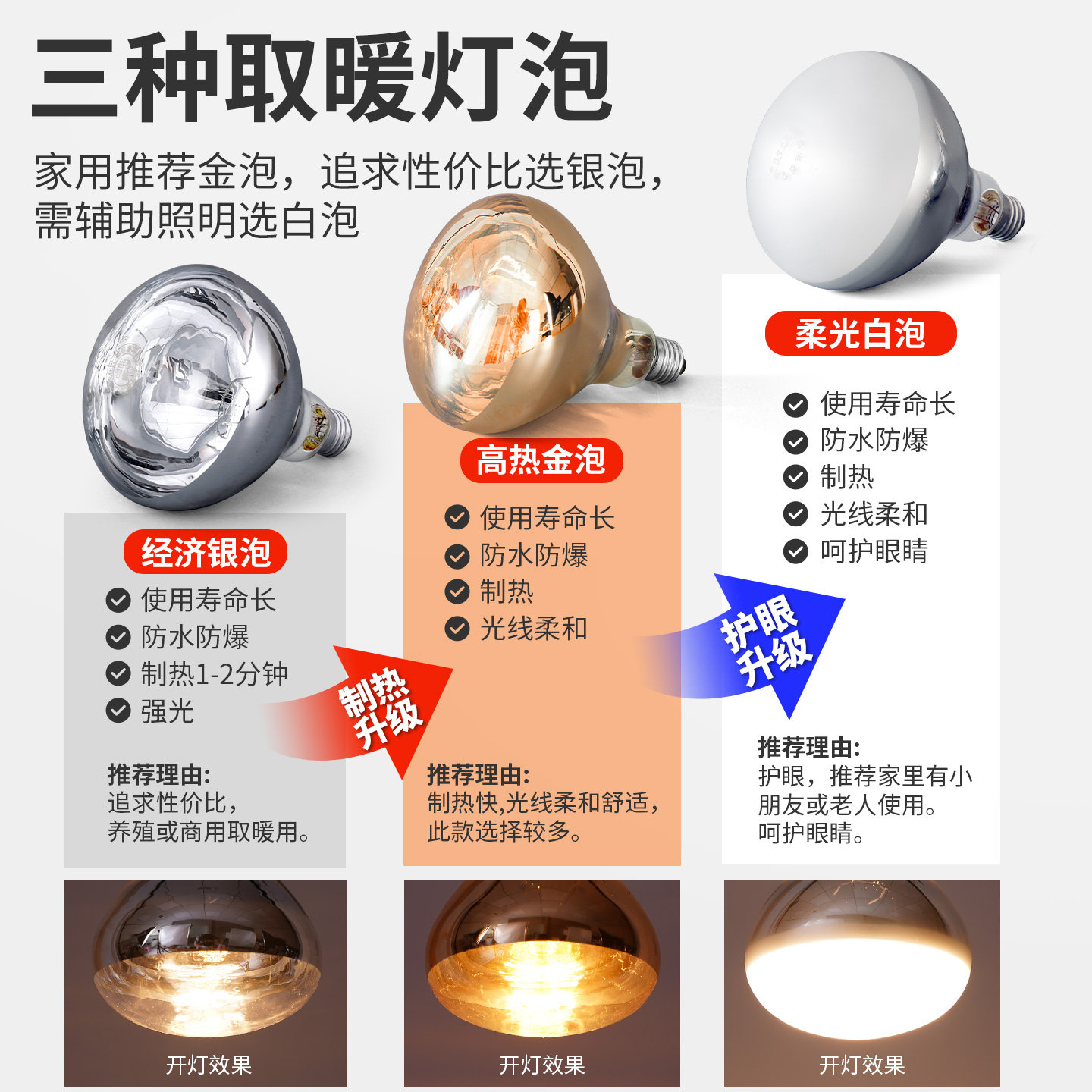 免打孔灯暖浴霸单灯泡275w壁挂式浴室卫生间洗澡取暖插座照明家用
