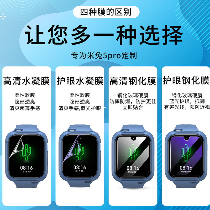 适用小米米兔5PRO钢化膜儿童电话手表5pro保护膜米兔5pro贴膜米兔5pro手表膜5pro保护套软壳非全屏蓝光护眼