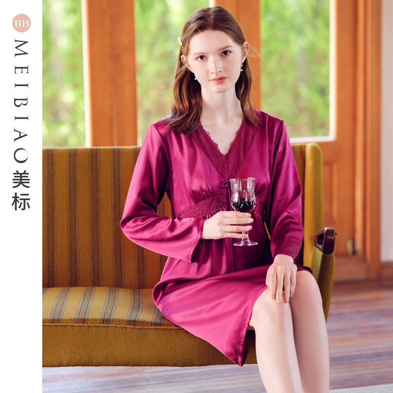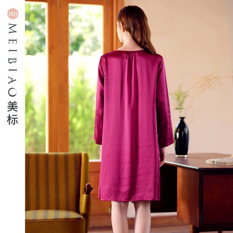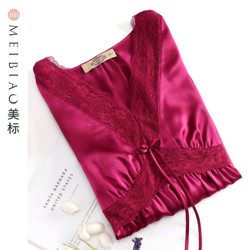 美标真丝睡衣女士中袖短睡裙性感19姆米桑蚕丝家居服丝绸连衣裙
