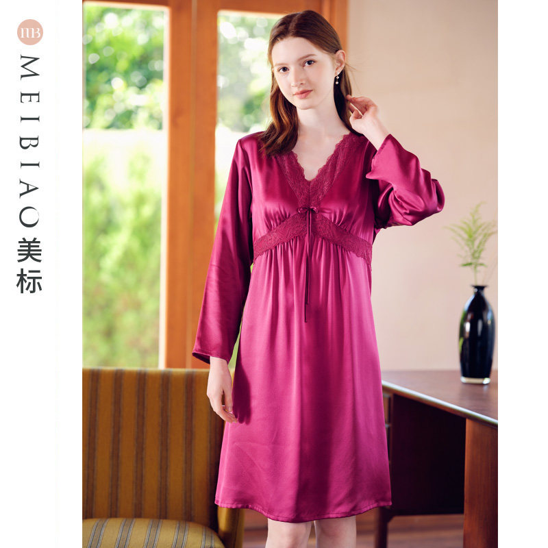 银桑INESANCE22姆米重磅长款真丝睡裙蕾丝宽松轻奢桑蚕丝女士睡衣