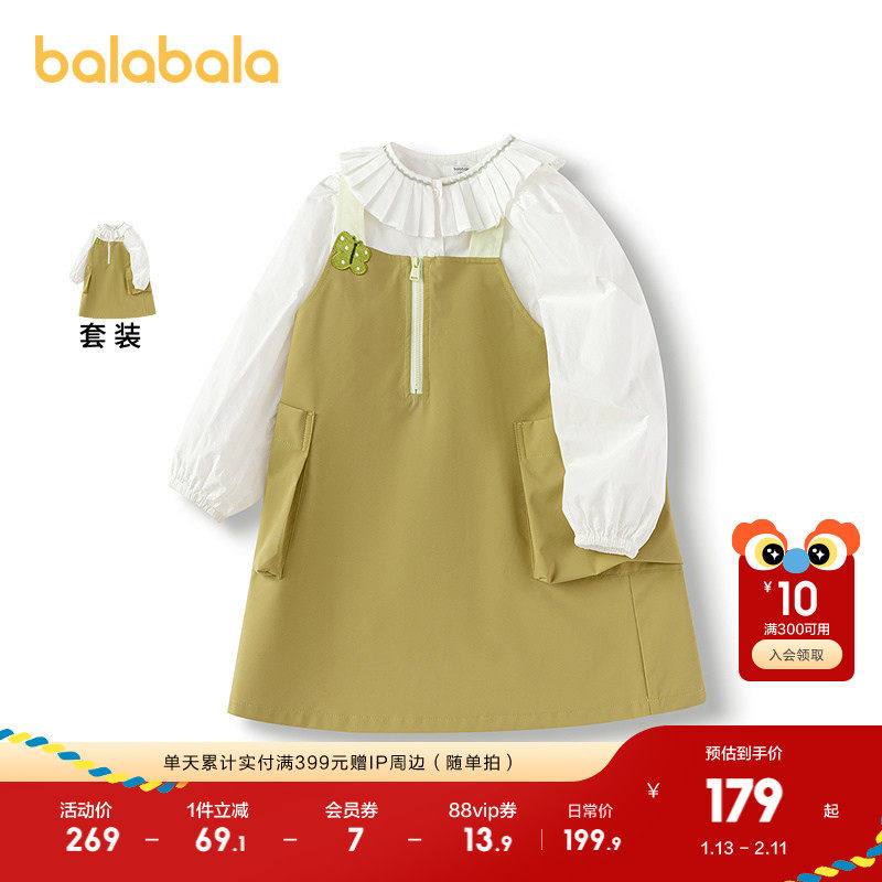 巴拉巴拉童装女童连衣裙儿童套装2025春新款背带裙甜美裙子两件套