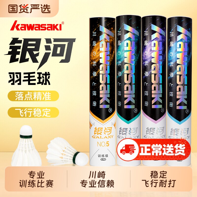 川崎银河羽毛球正品专业训练飞行稳定耐打王6/12只比赛用球硬球头