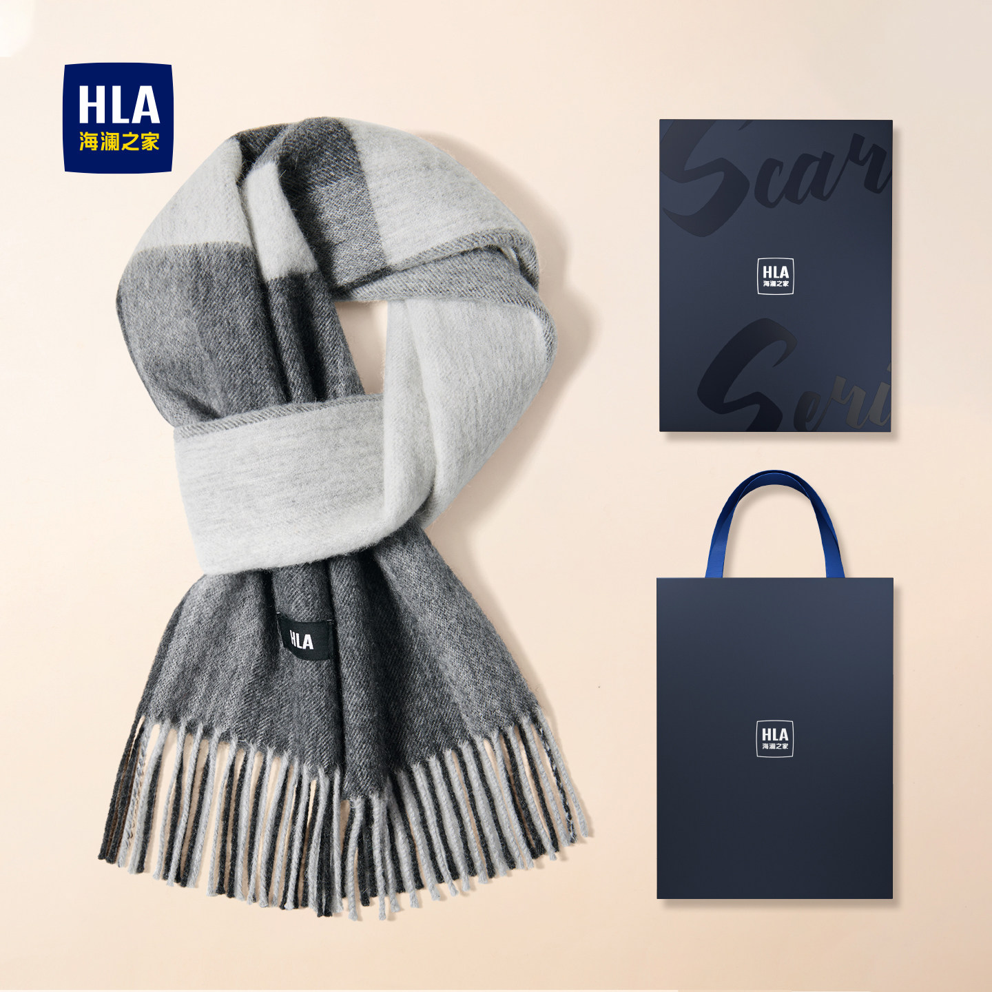 海澜之家围巾男士2025新款秋冬保暖户外骑行格子流苏围脖送男友潮