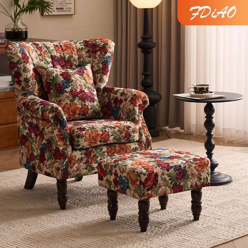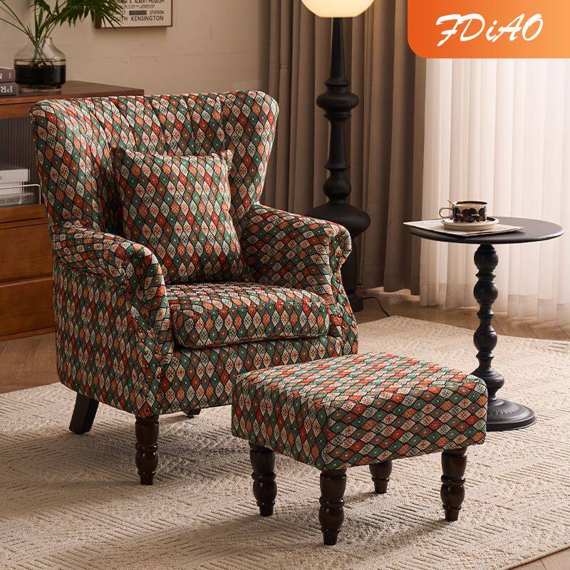 美式老虎椅皮布艺沙发单人小户型客厅卧室书房高背懒人沙发椅组合