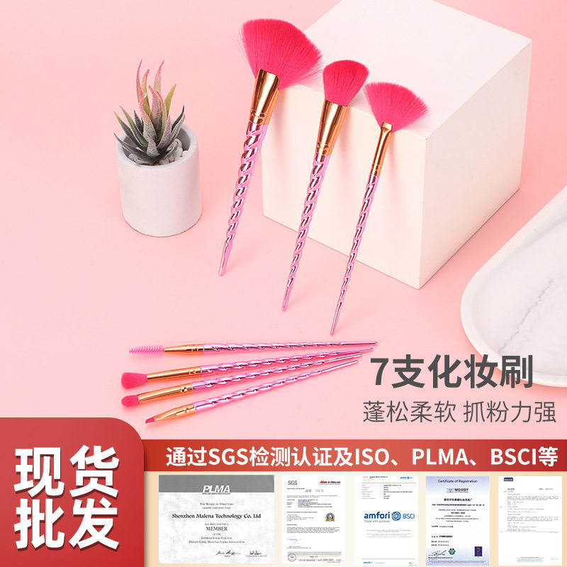 新款塑胶铝管7支化妆刷套装 彩妆用品晒红粉底眼影眼线化妆刷厂家