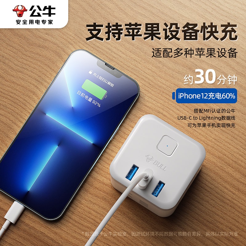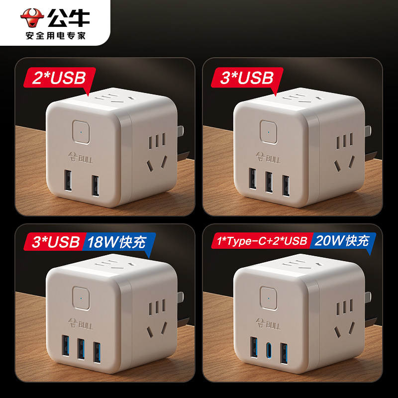 公牛充电器头多口USB插头魔方插座床头拓展插头多用桌面充电手机快充华为安卓通用苹果iPhone13手机20W快充PD