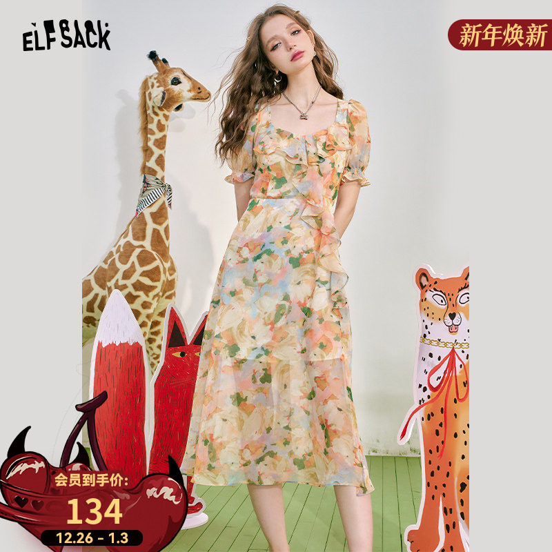 【花天酒地裙】妖精的口袋法式泡泡袖显瘦碎花连衣裙女2025夏新款