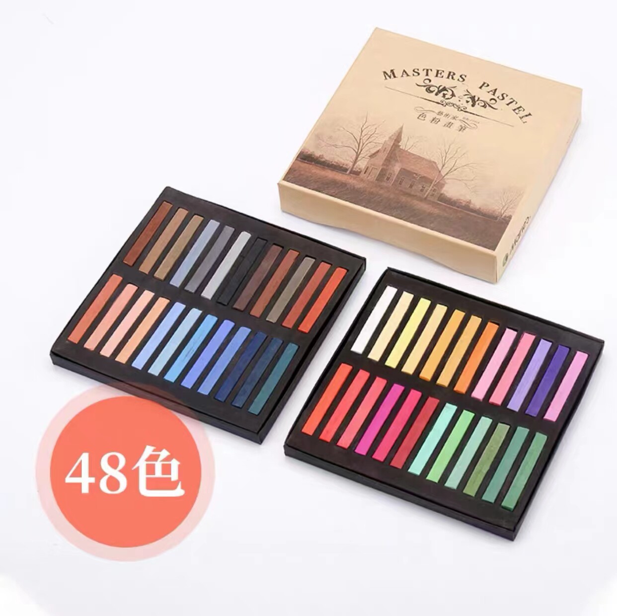 韩国盟友色粉笔72色木盒学院级彩色粉笔颜料彩绘色粉手绘绘画专业画画套装初学者粉彩棒画笔美术用品工具